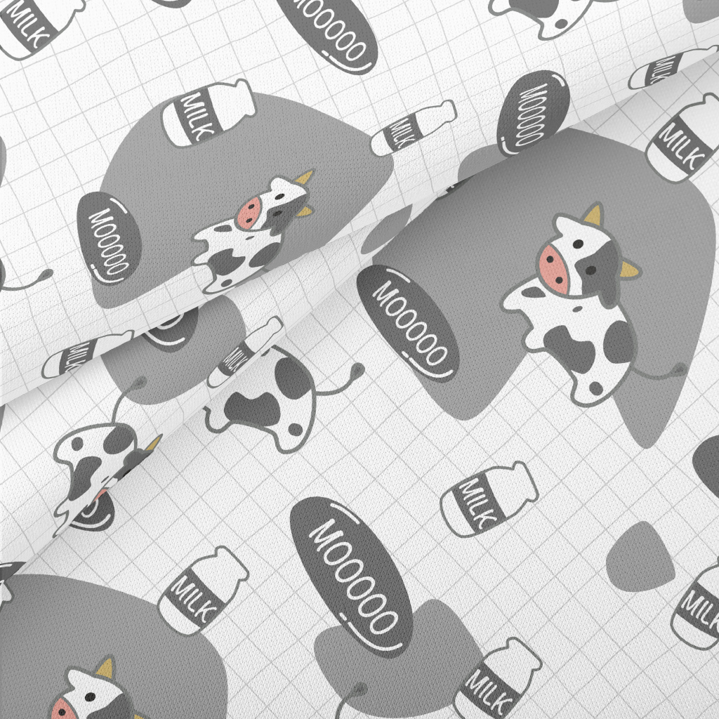 呆萌乳牛和牛奶羅馬布(幅寬160公分)