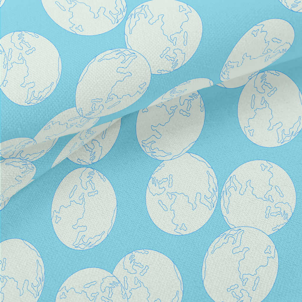 手繪風格行星地球竹節麻(幅寬150公分)