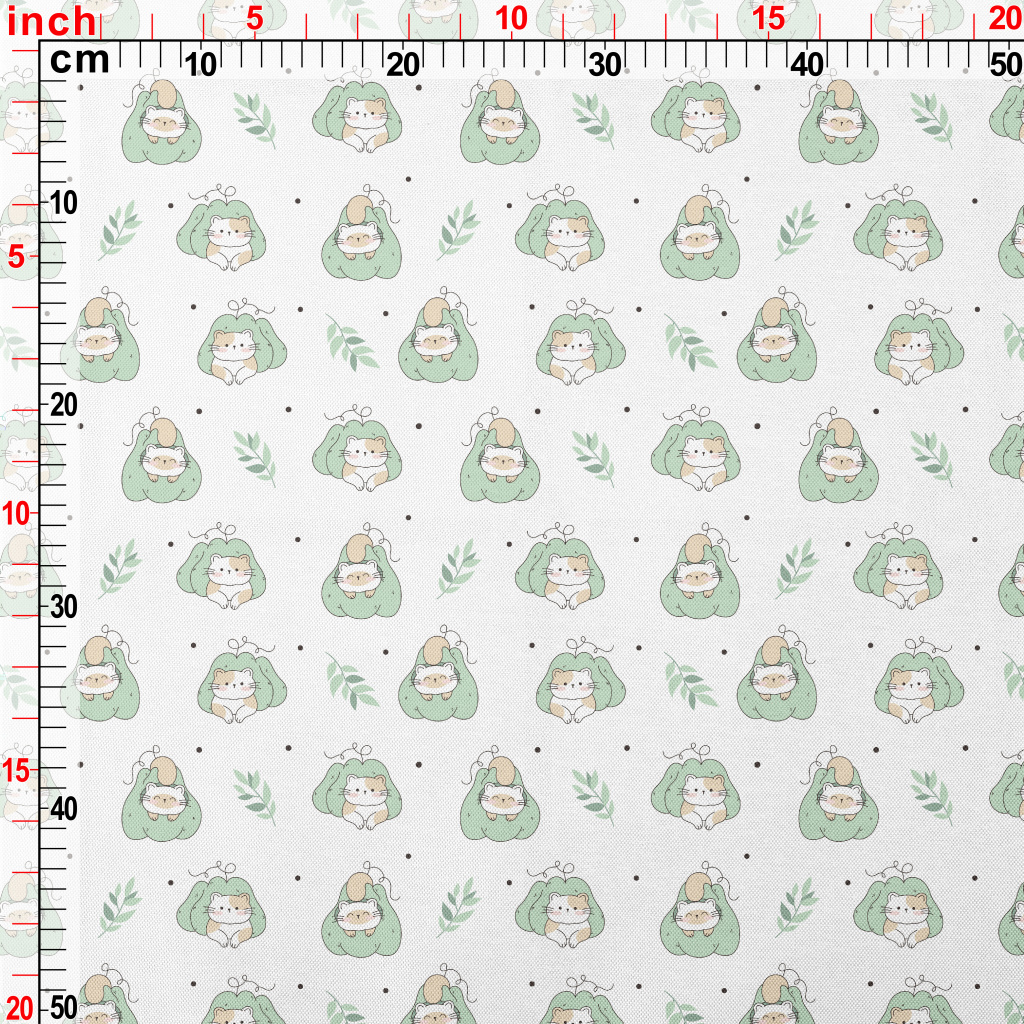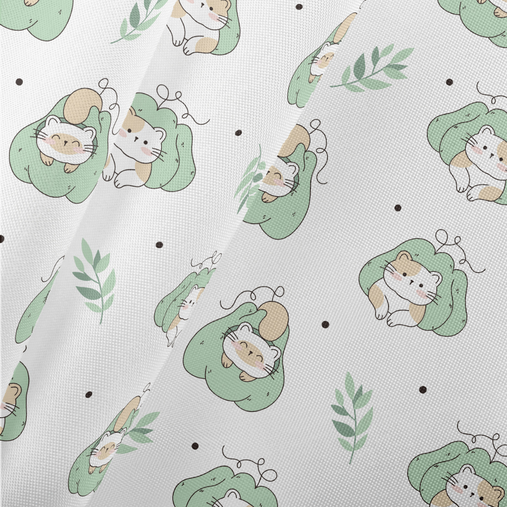 窩在南瓜裡的貓咪春亞紡(幅寬160公分)