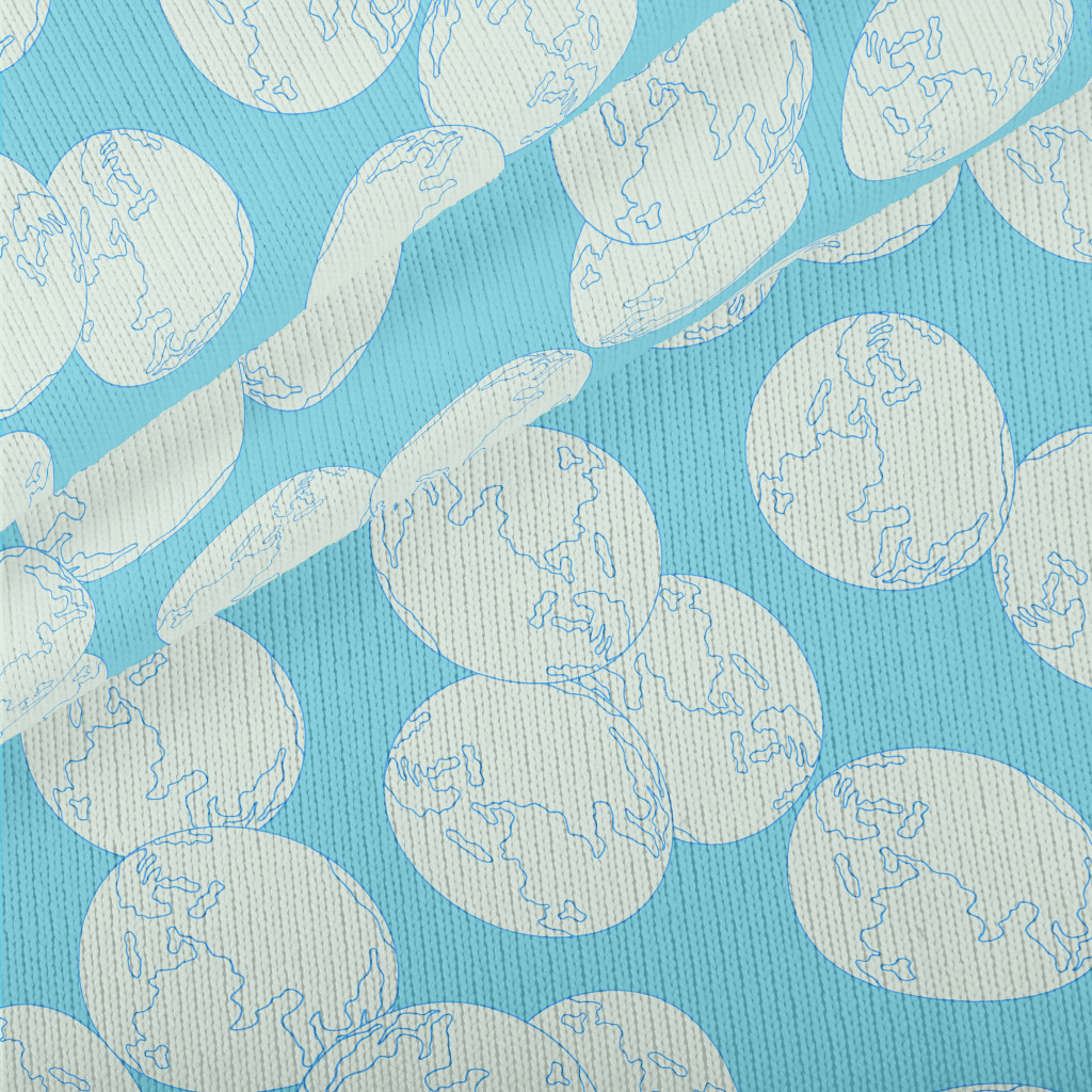 手繪風格行星地球仿毛衣布(幅寬150公分)