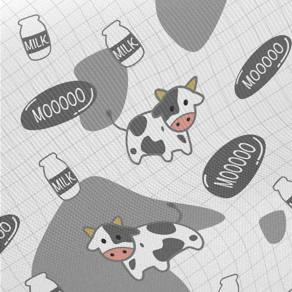呆萌乳牛和牛奶厚棉布(幅寬150公分)