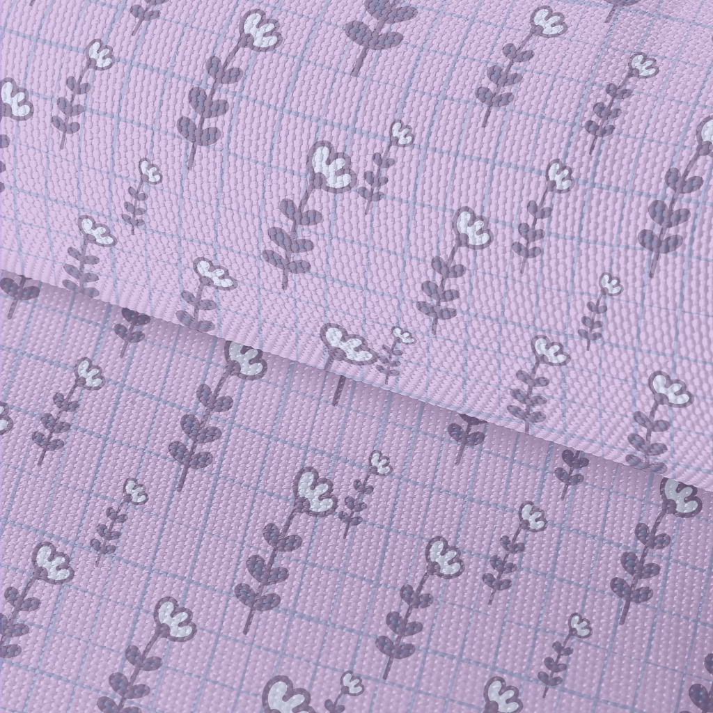 紫色可愛花朵與格子牛津布(幅寬150公分)