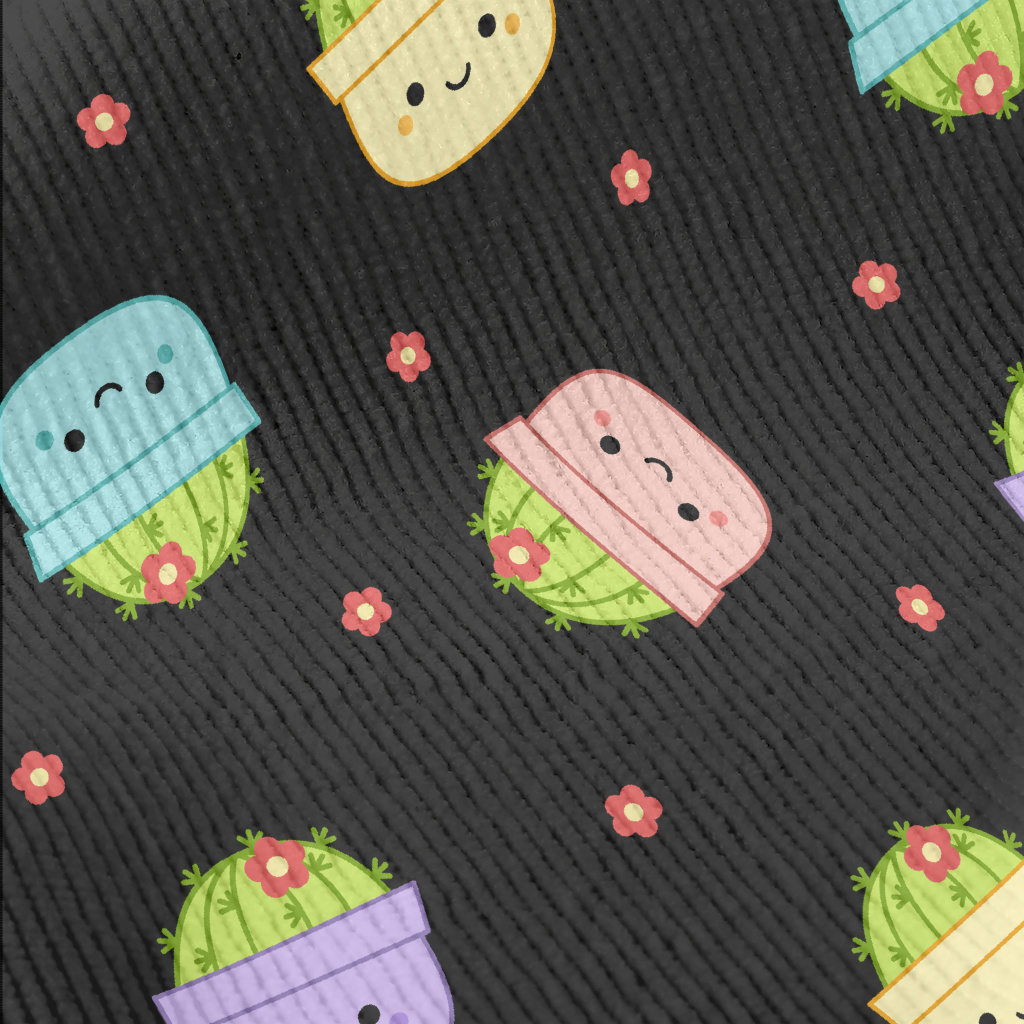 彩色仙人掌與花朵燈芯絨(幅寬150公分)