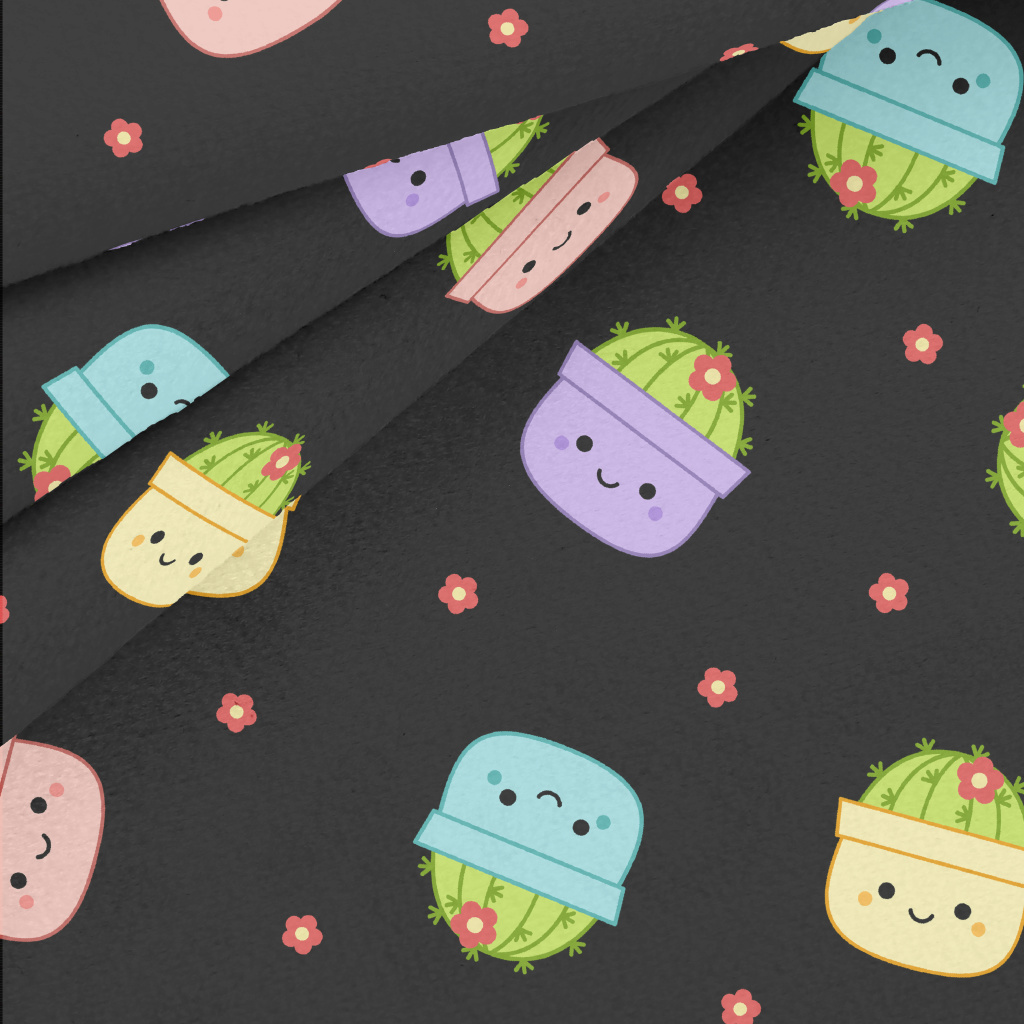 彩色仙人掌與花朵水晶絨(幅寬160公分)