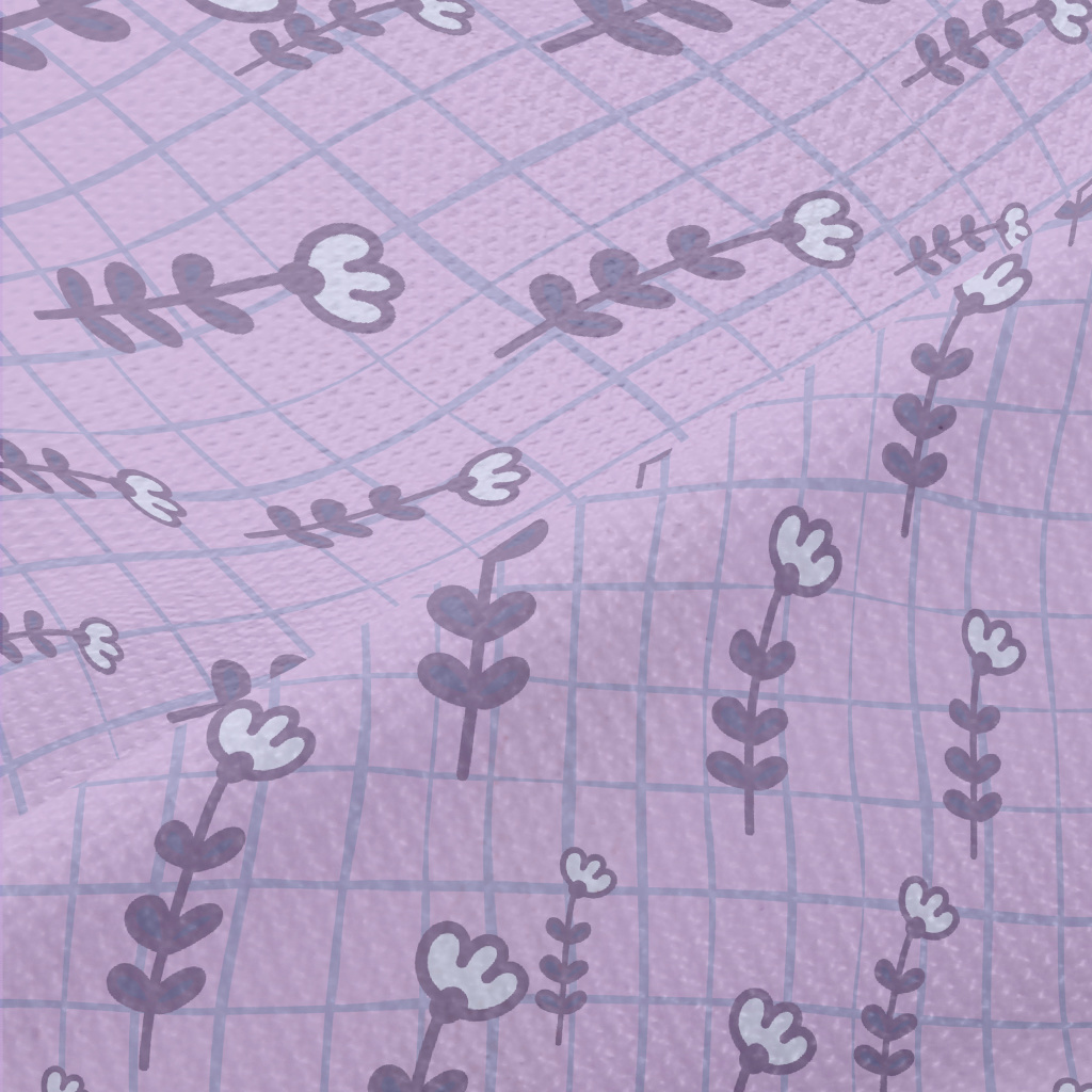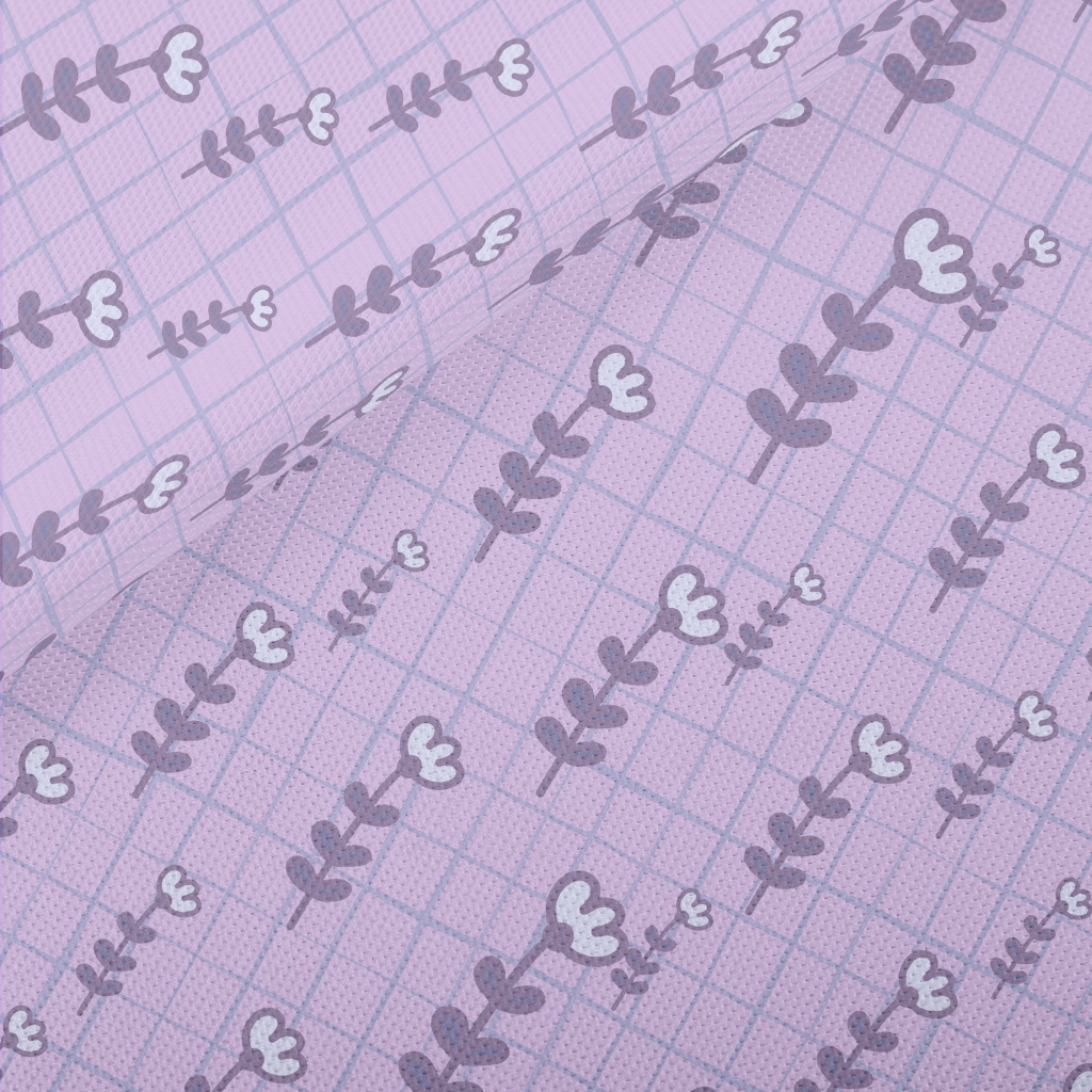 紫色可愛花朵與格子高爾布(幅寬180公分)