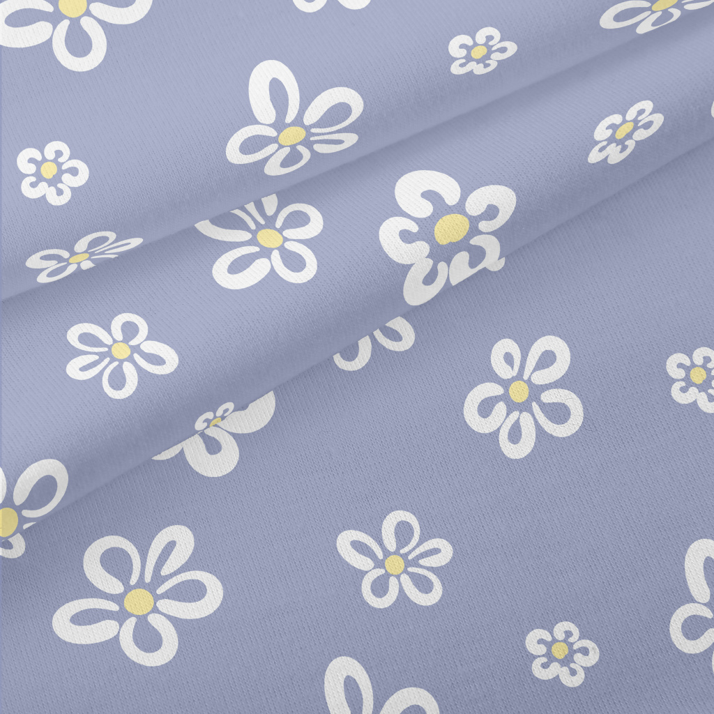 簡約塗鴉白色花朵仿棉布(幅寬150公分)