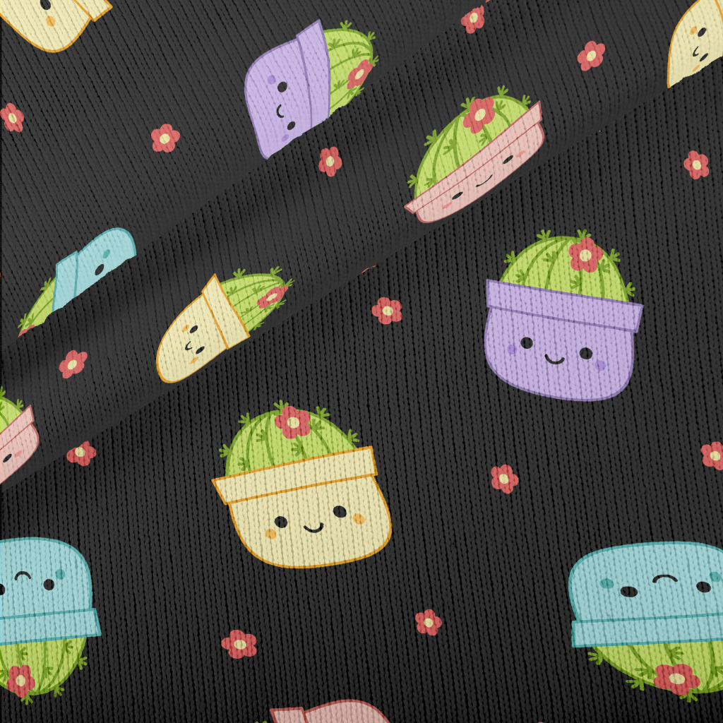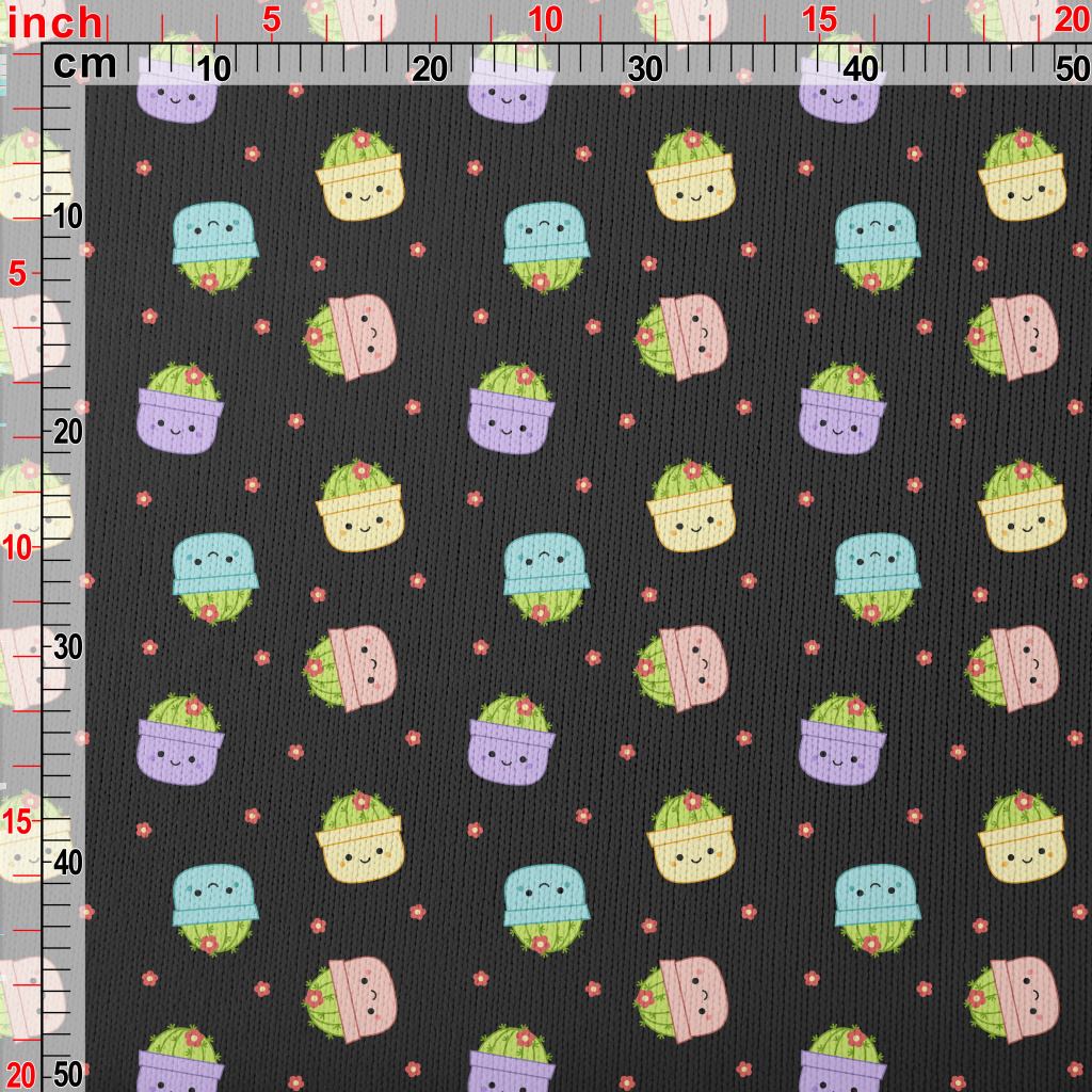 彩色仙人掌與花朵仿毛衣布(幅寬150公分)