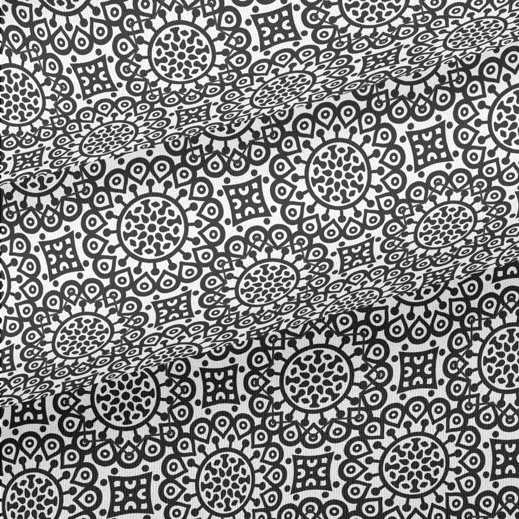 黑白塗鴉線條團花雪紡布(幅寬150公分)