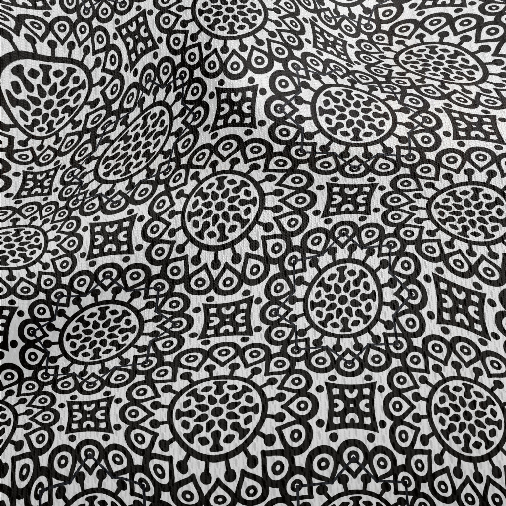 黑白塗鴉線條團花鳥眼布(幅寬160公分)