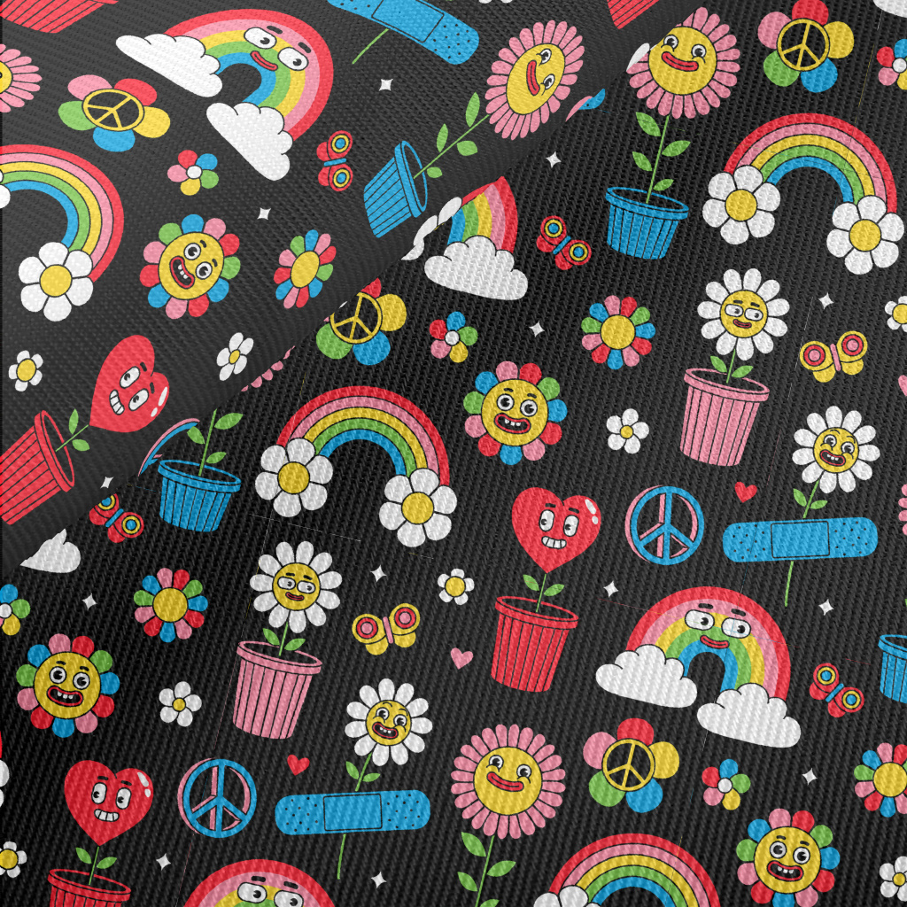 美式卡通彩虹花朵斜紋布(幅寬150公分)