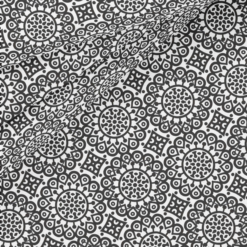 黑白塗鴉線條團花水晶絨(幅寬160公分)