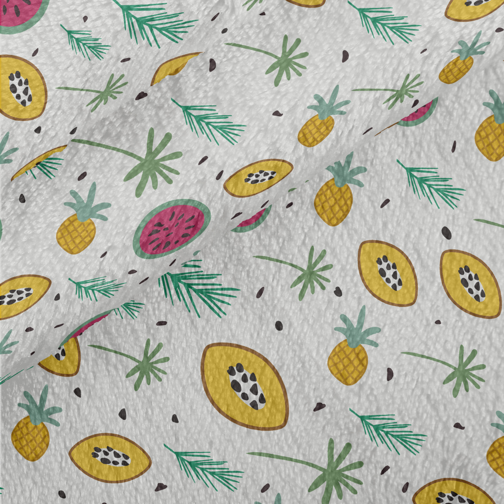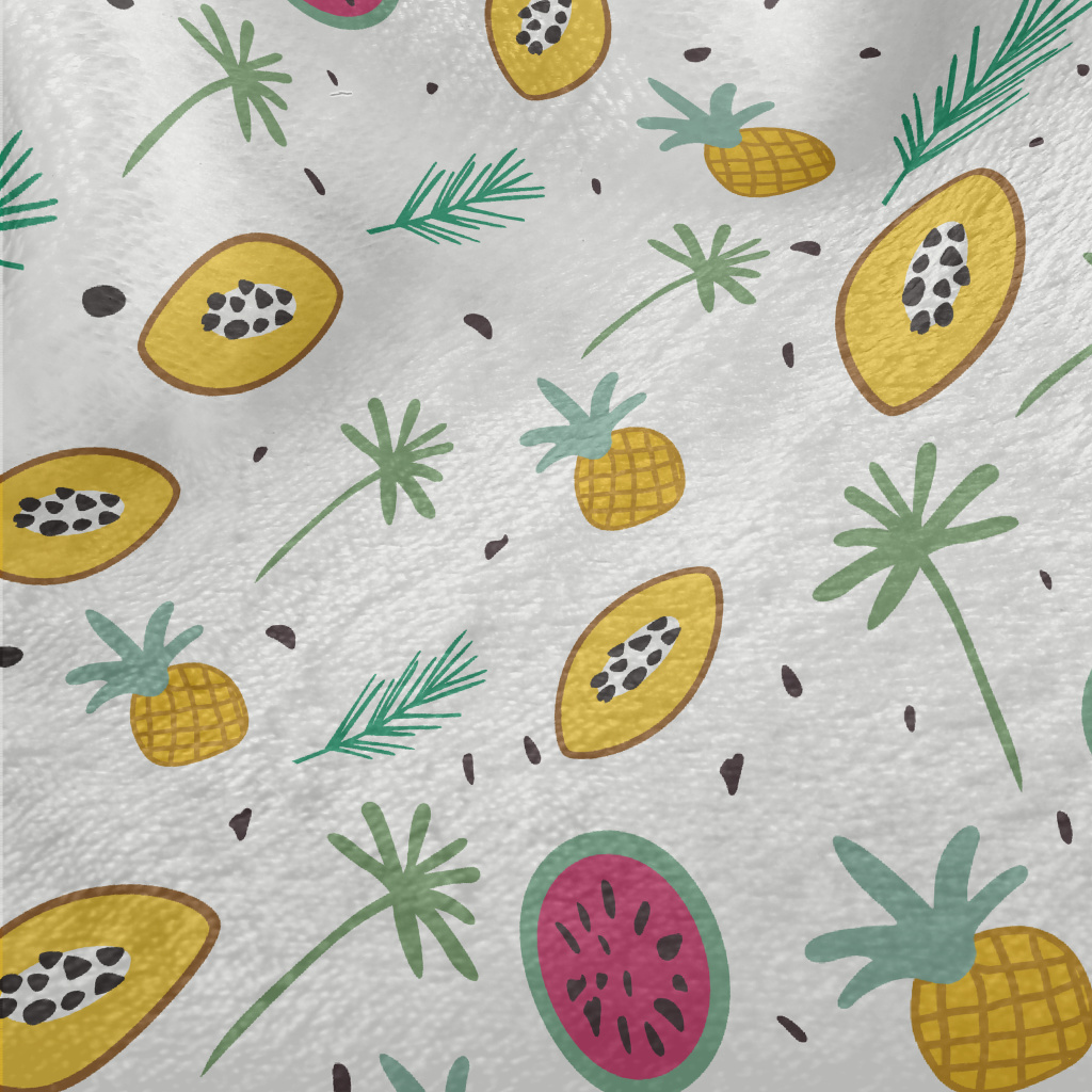 夏季水果和樹葉法蘭絨(幅寬150公分)