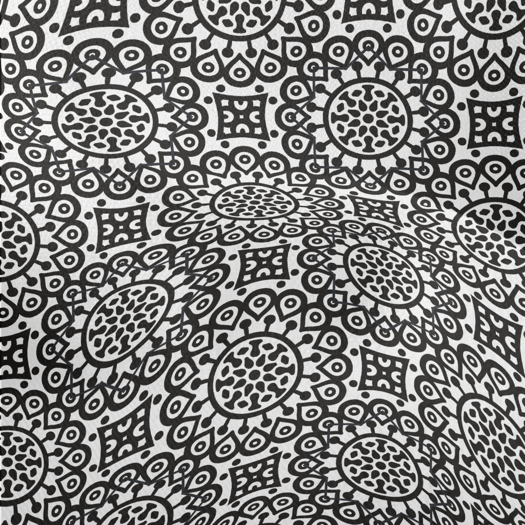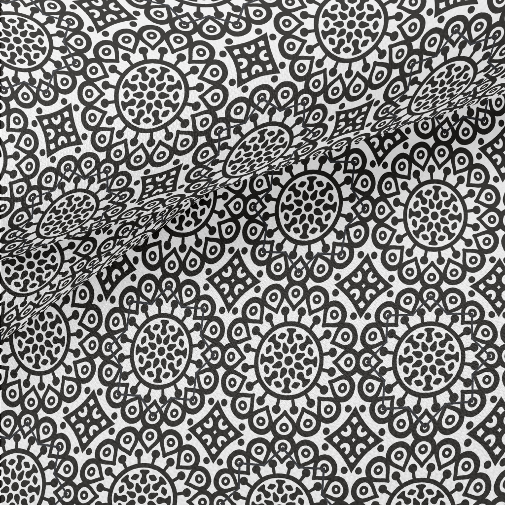 黑白塗鴉線條團花竹節麻(幅寬150公分)