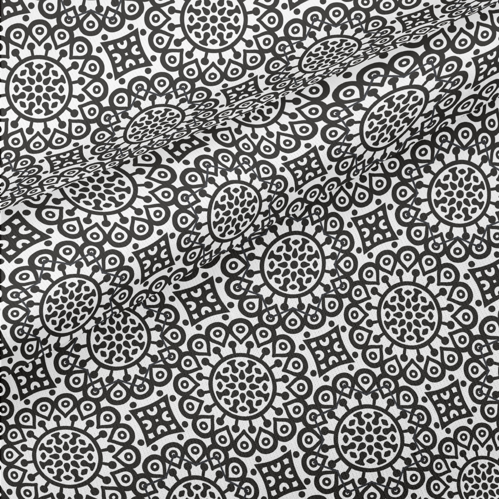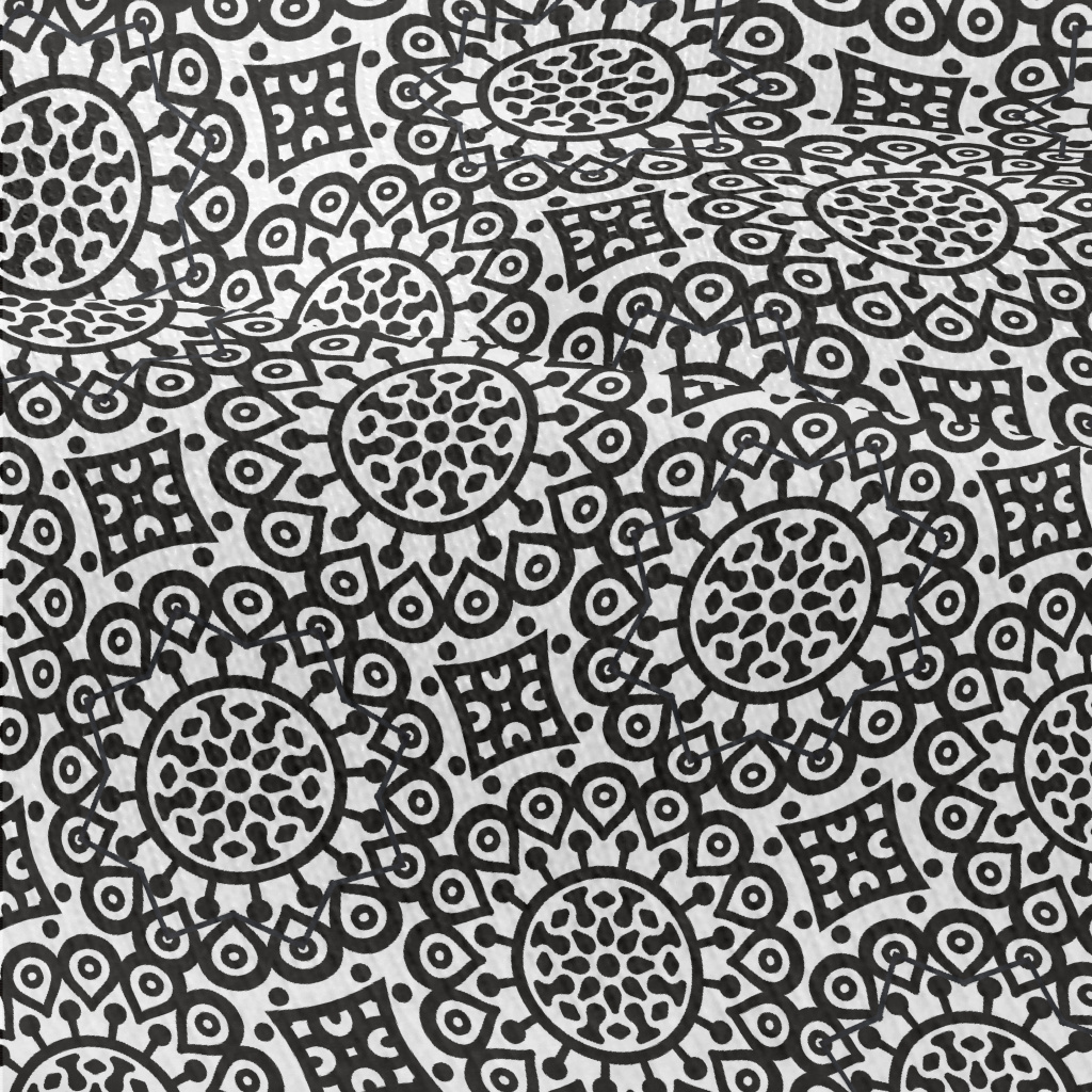 黑白塗鴉線條團花仿棉布(幅寬150公分)