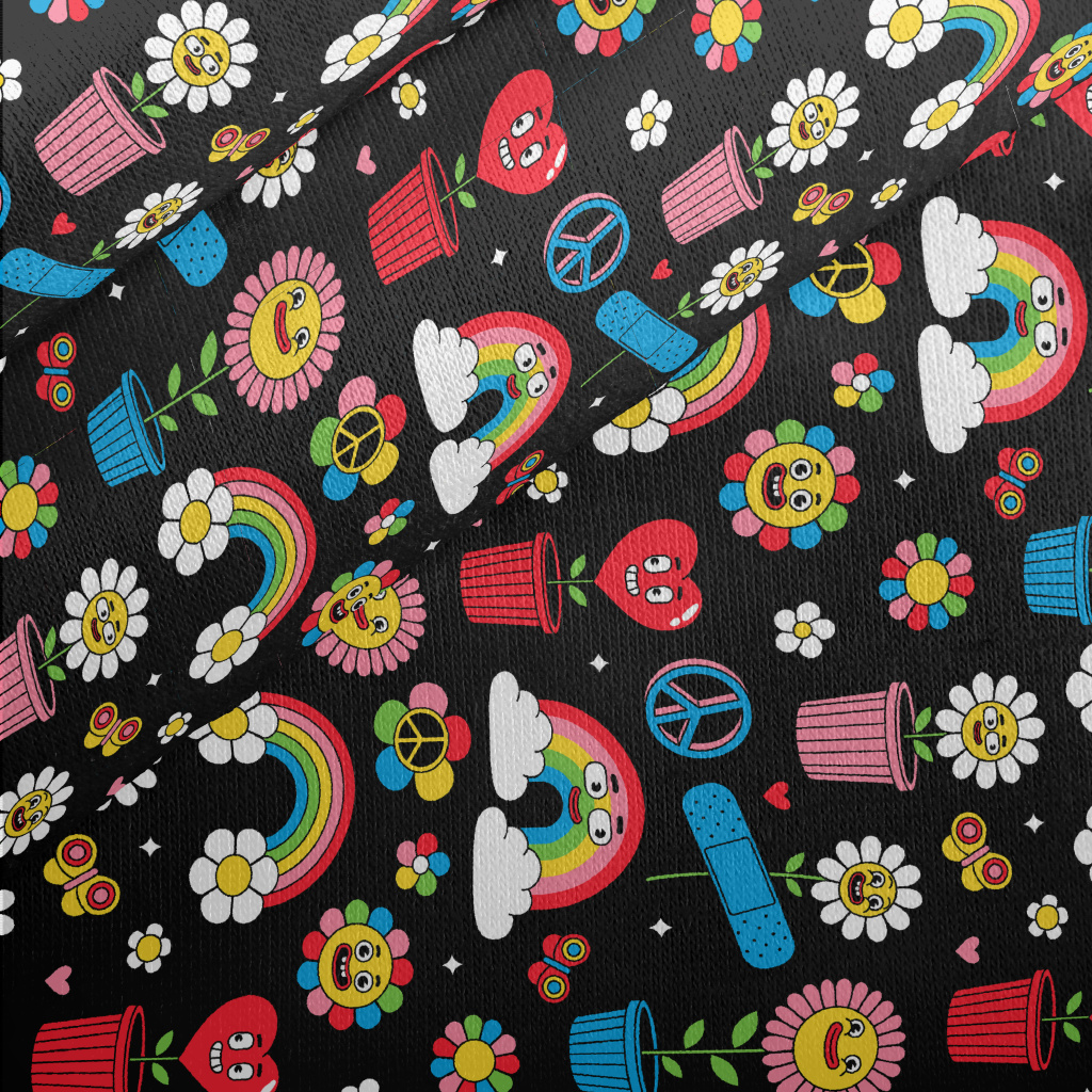 美式卡通彩虹花朵刷毛布(幅寬150公分)