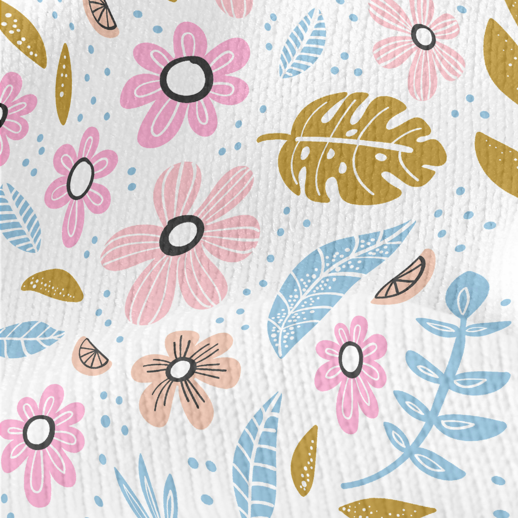 手繪花朵和葉子仿毛衣布(幅寬150公分)