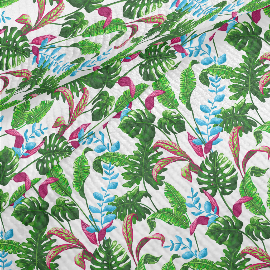 手繪寫實熱帶植物毛巾布(幅寬160公分)