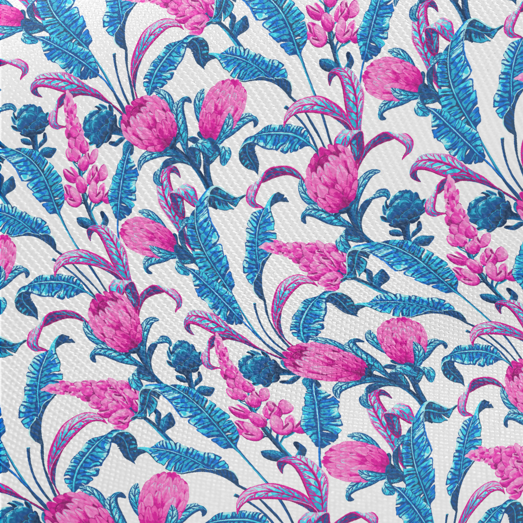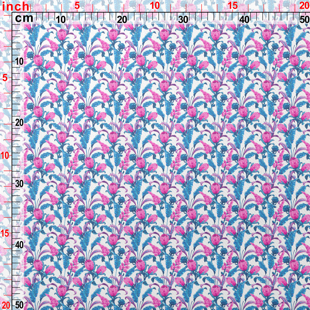 手繪寫實花朵與葉子斜紋布(幅寬150公分)