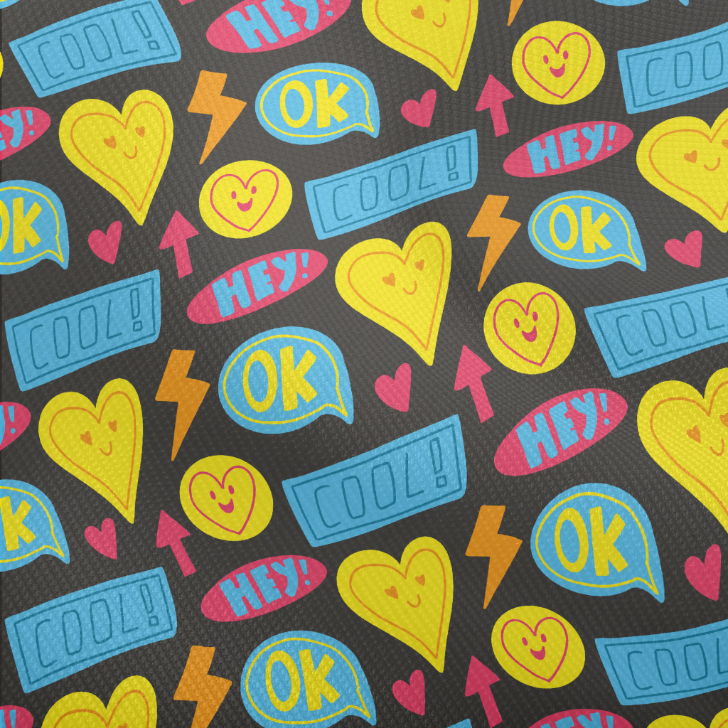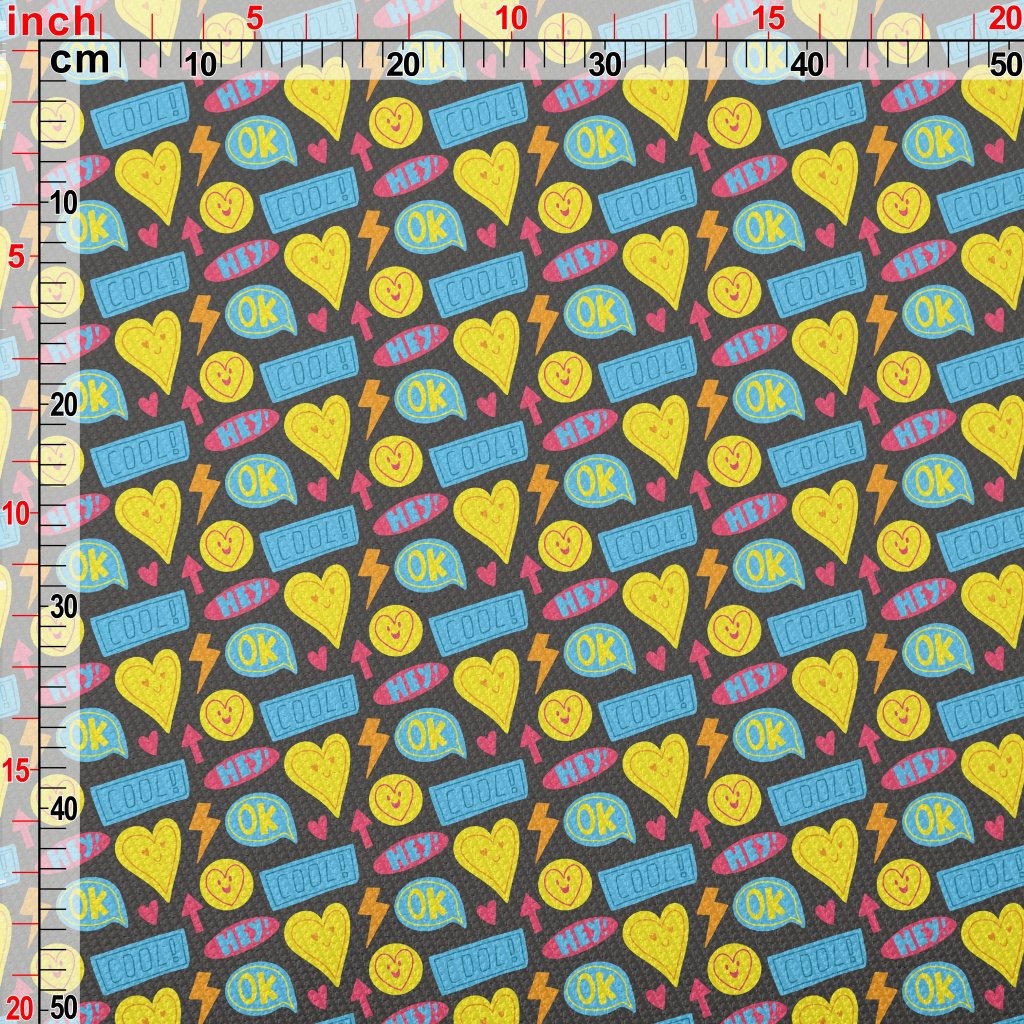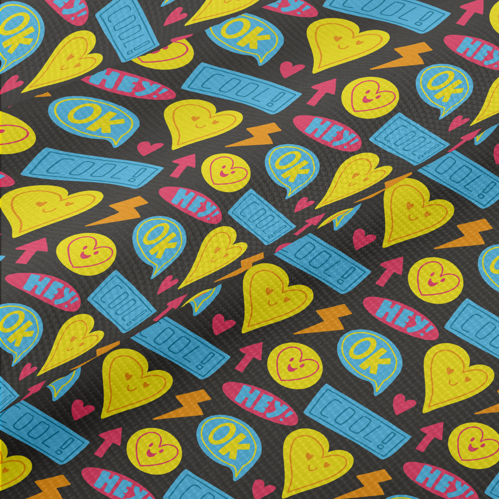 彩色鮮豔英文和愛心雙斜布(幅寬150公分)