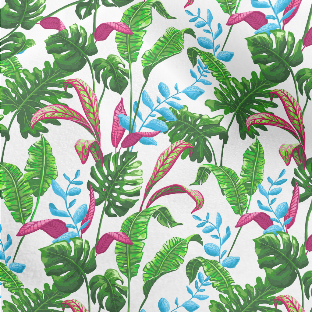 手繪寫實熱帶植物水晶絨(幅寬160公分)