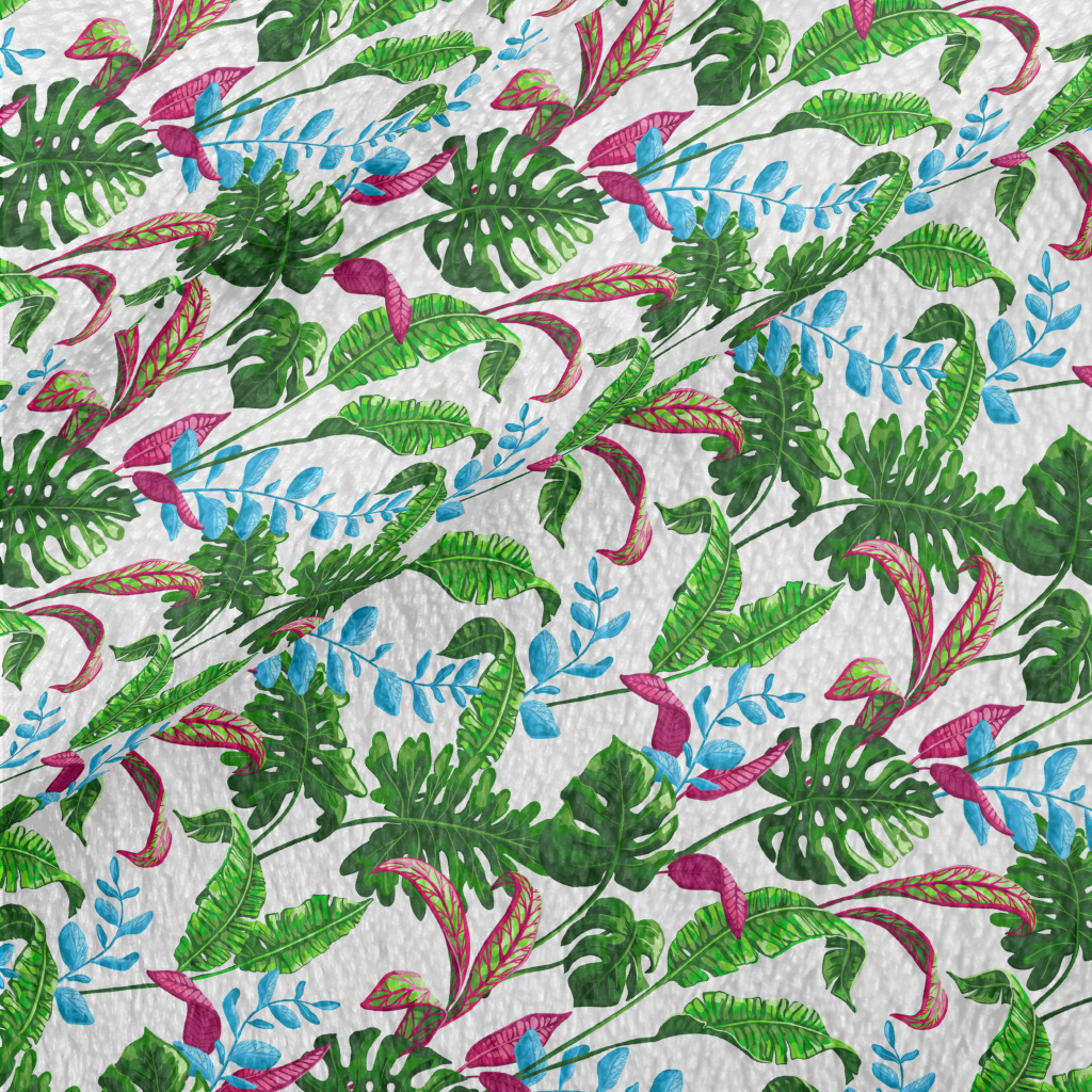 手繪寫實熱帶植物法蘭絨(幅寬150公分)