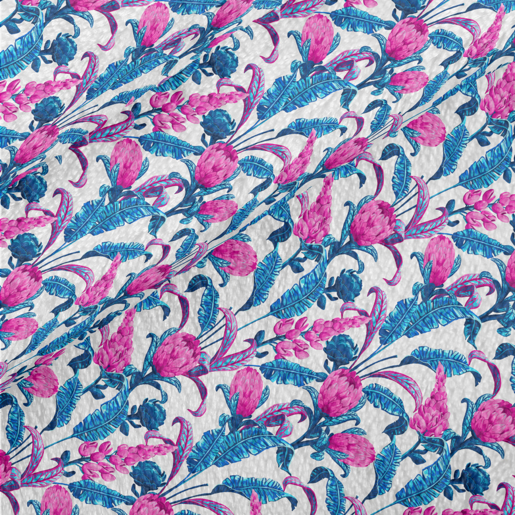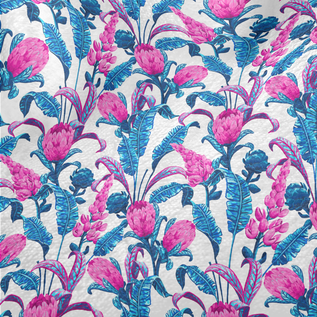 手繪寫實花朵與葉子法蘭絨(幅寬150公分)