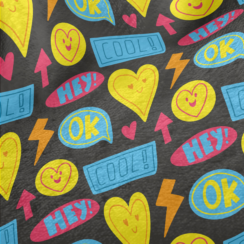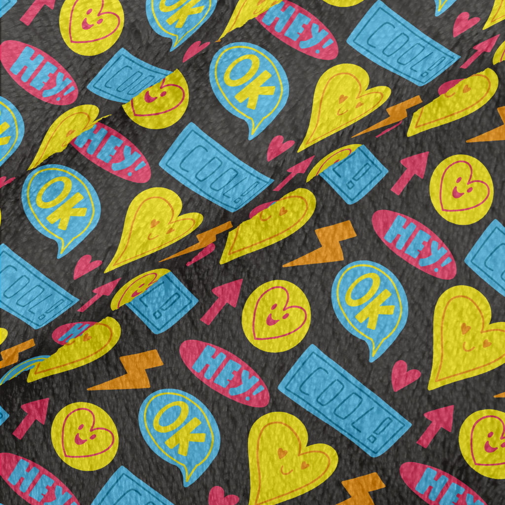 彩色鮮豔英文和愛心法蘭絨(幅寬150公分)