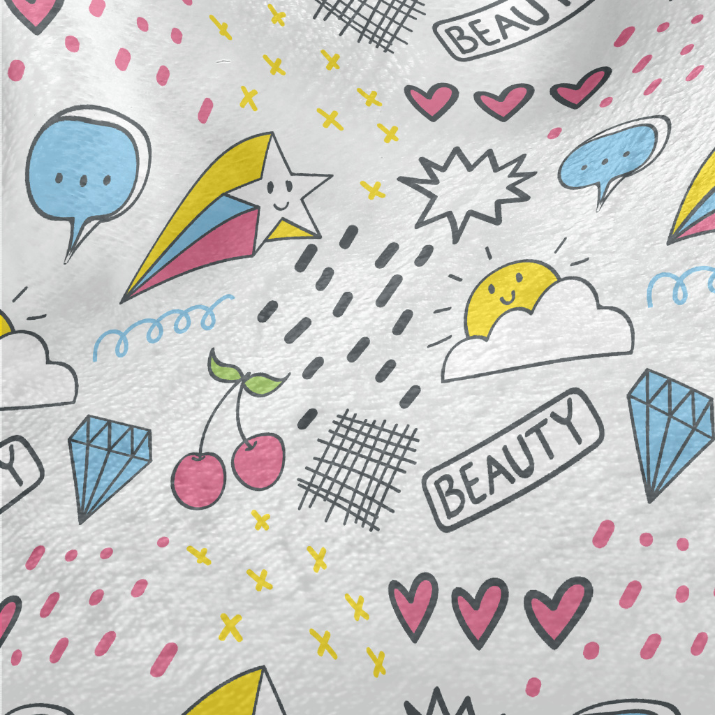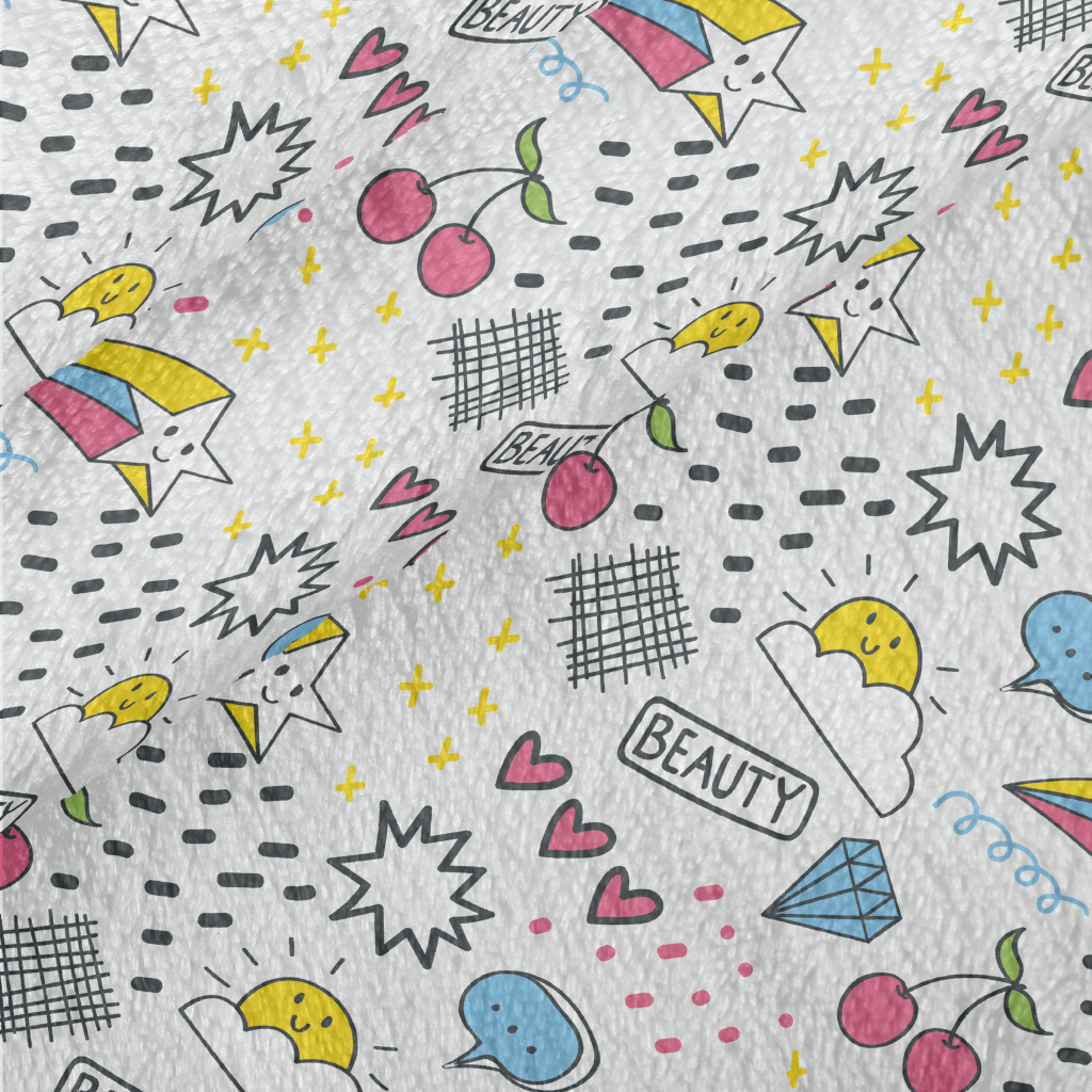可愛太陽星星愛心櫻桃圖案法蘭絨(幅寬150公分)