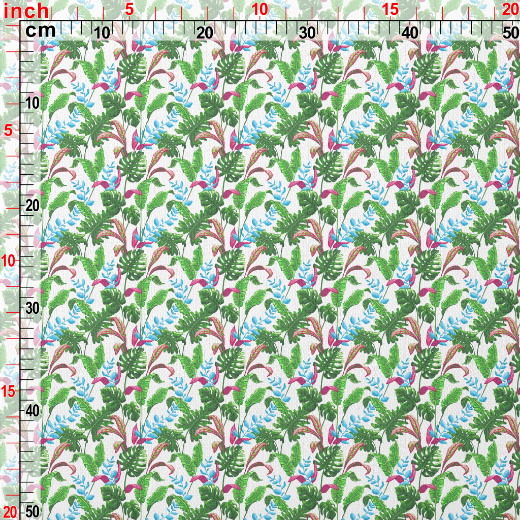 手繪寫實熱帶植物竹節麻(幅寬150公分)