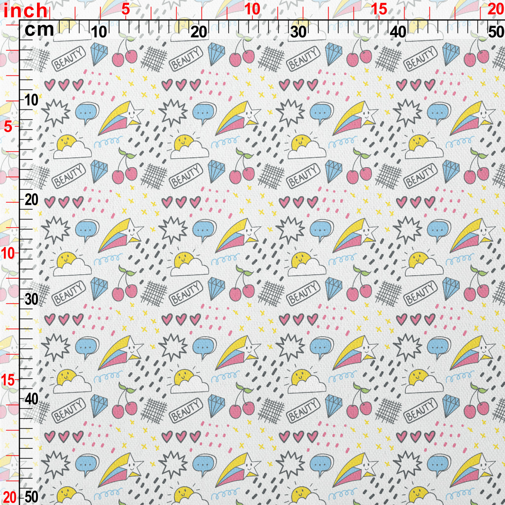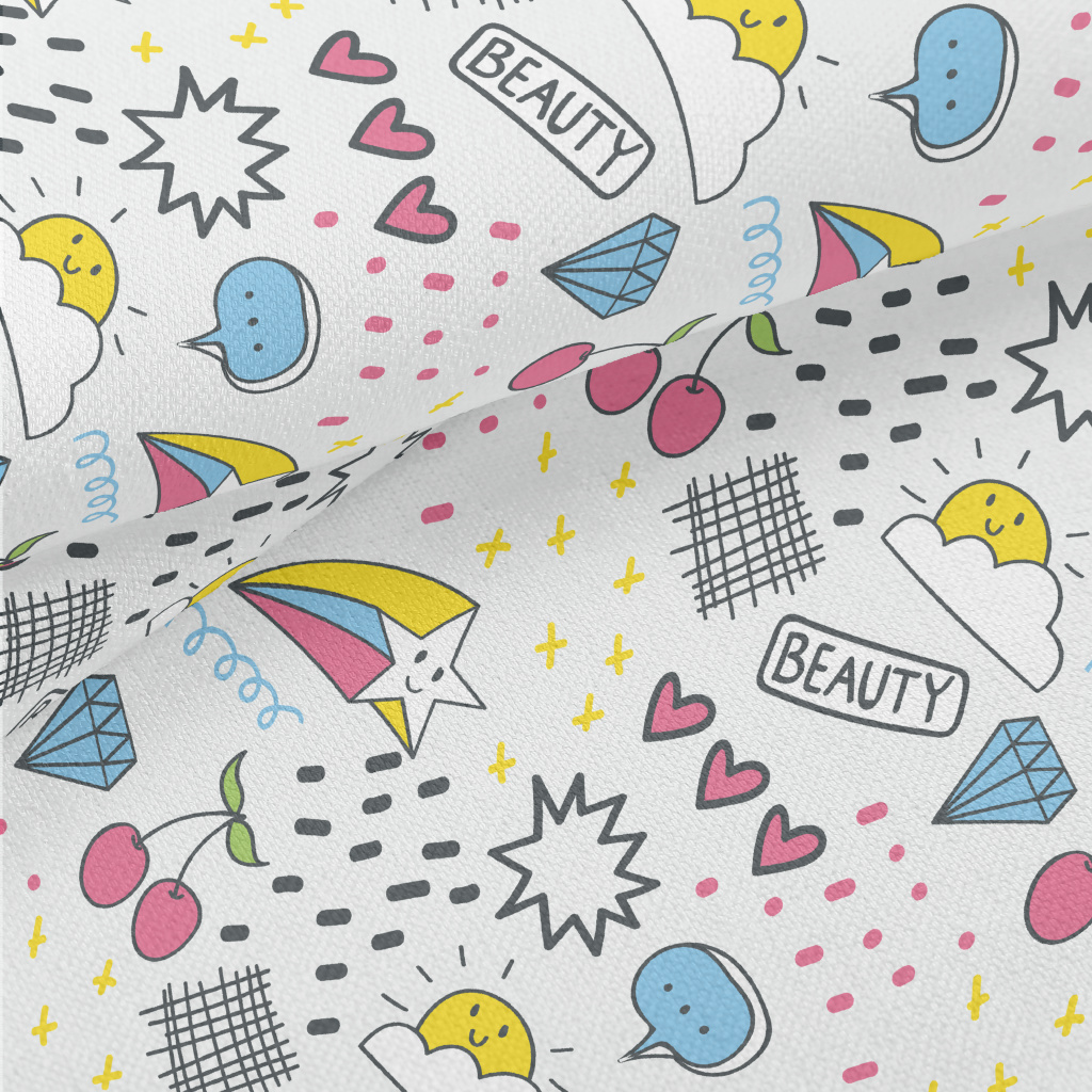 可愛太陽星星愛心櫻桃圖案竹節麻(幅寬150公分)
