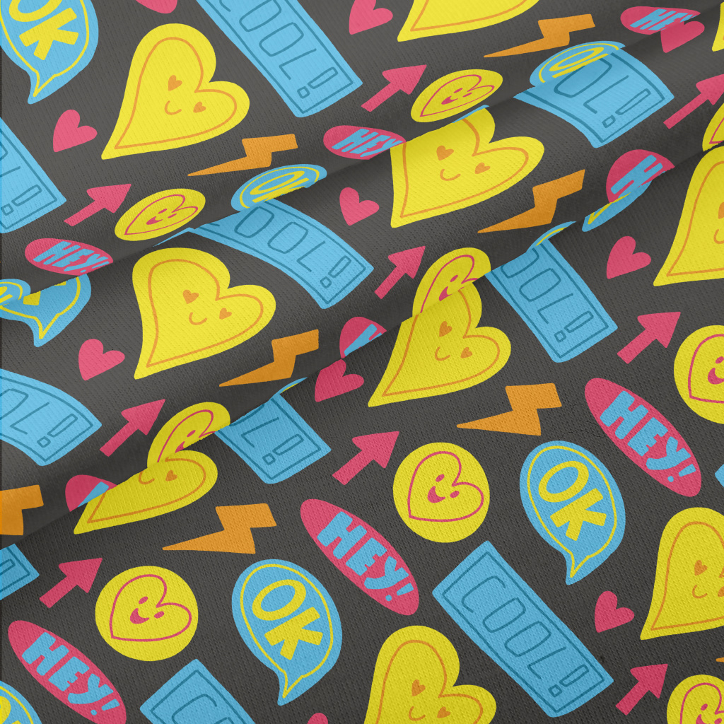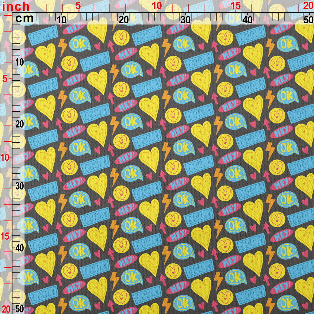 彩色鮮豔英文和愛心仿棉布(幅寬150公分)