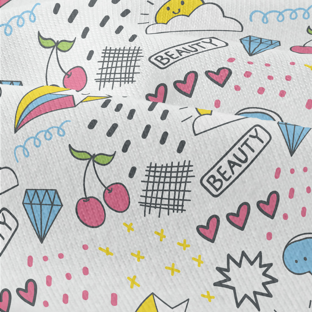 可愛太陽星星愛心櫻桃圖案仿棉布(幅寬150公分)