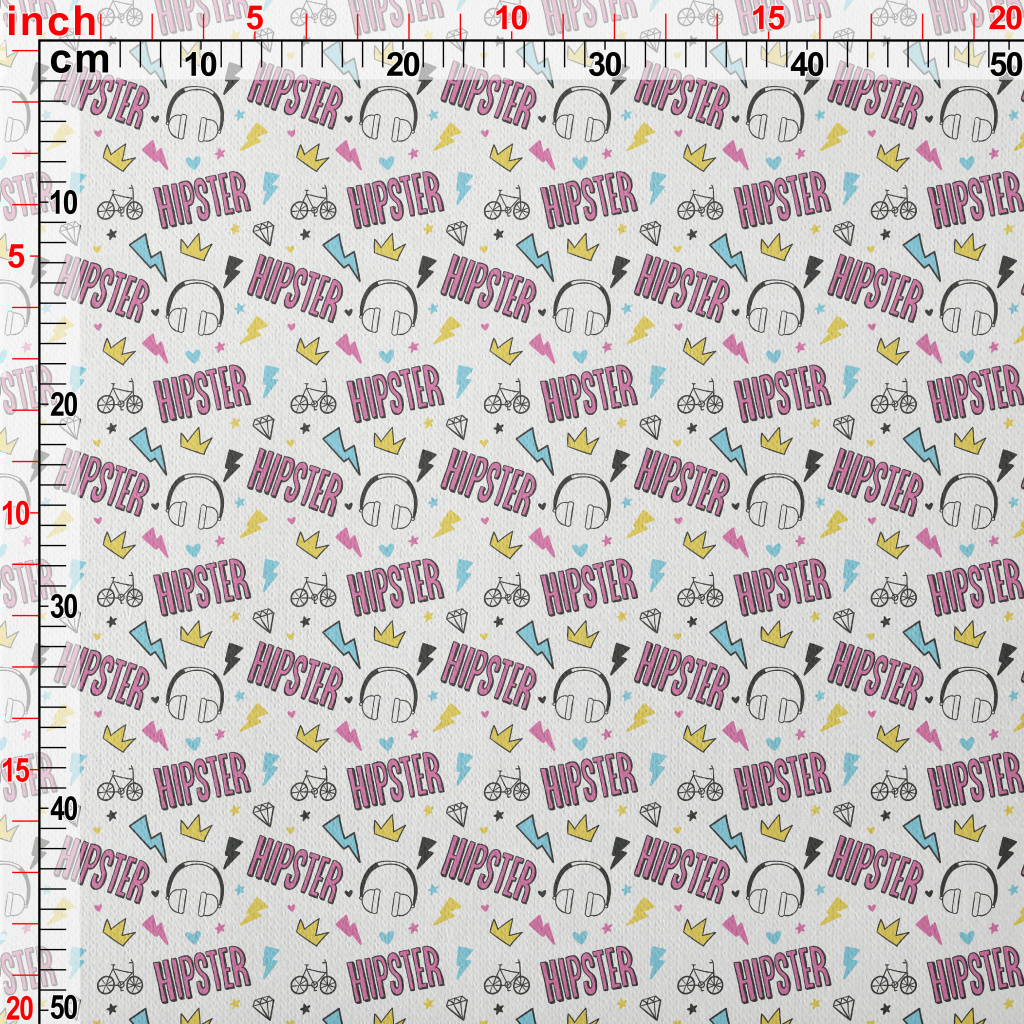 多彩風格的時髦文字圖案刷毛布(幅寬150公分)