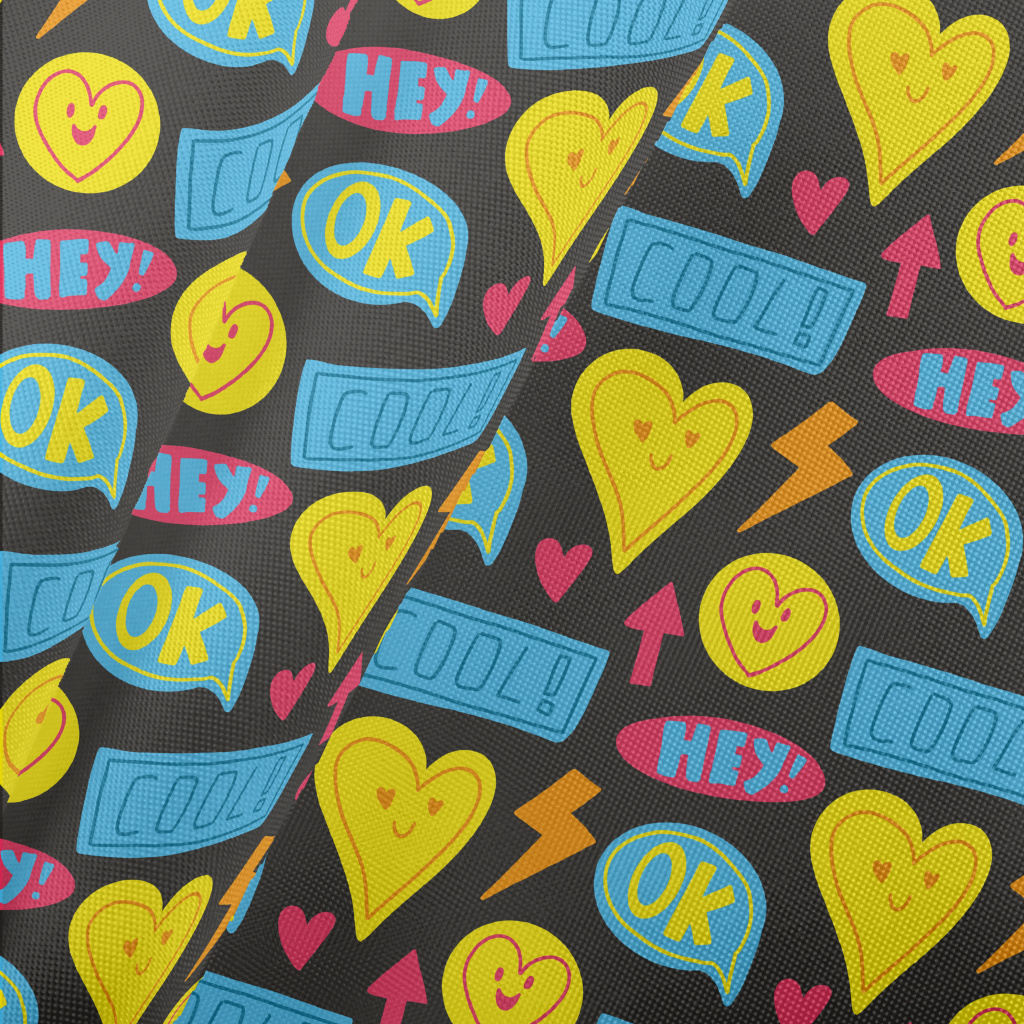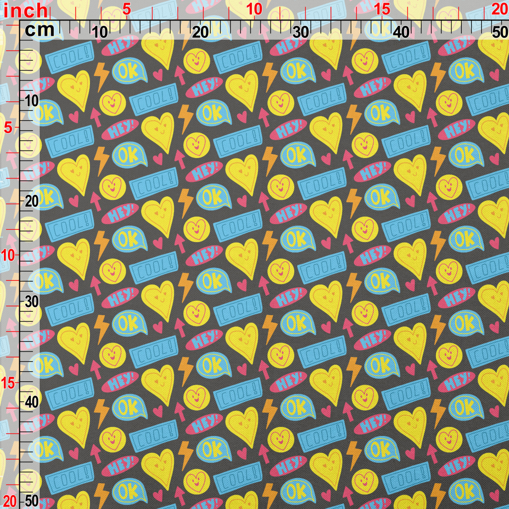 彩色鮮豔英文和愛心春亞紡(幅寬160公分)