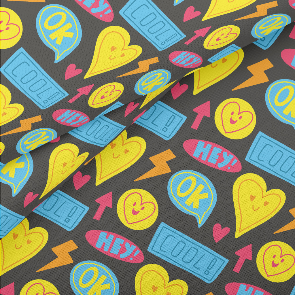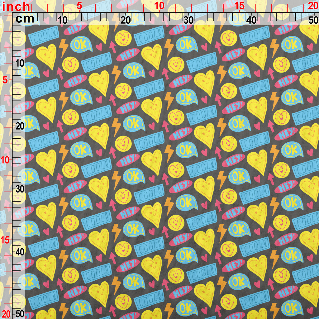 彩色鮮豔英文和愛心薄棉布(幅寬150公分)