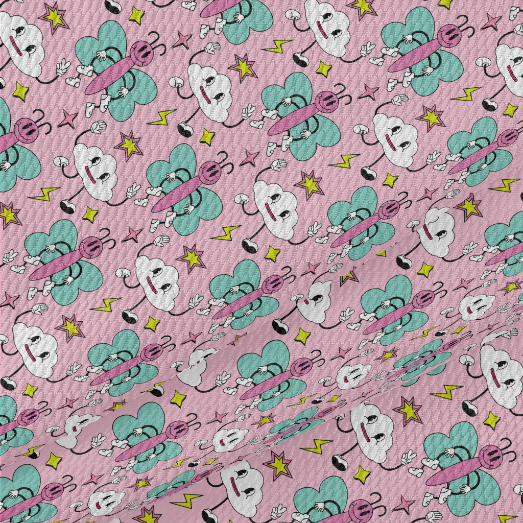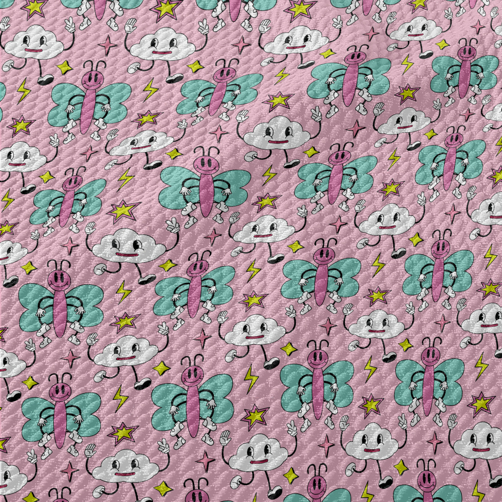 卡通粉色蝴蝶和雲朵泡泡布(幅寬160公分)