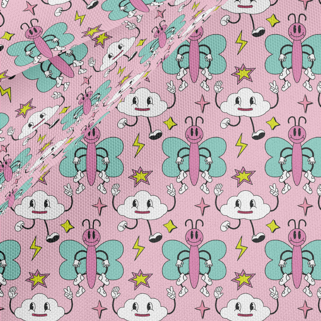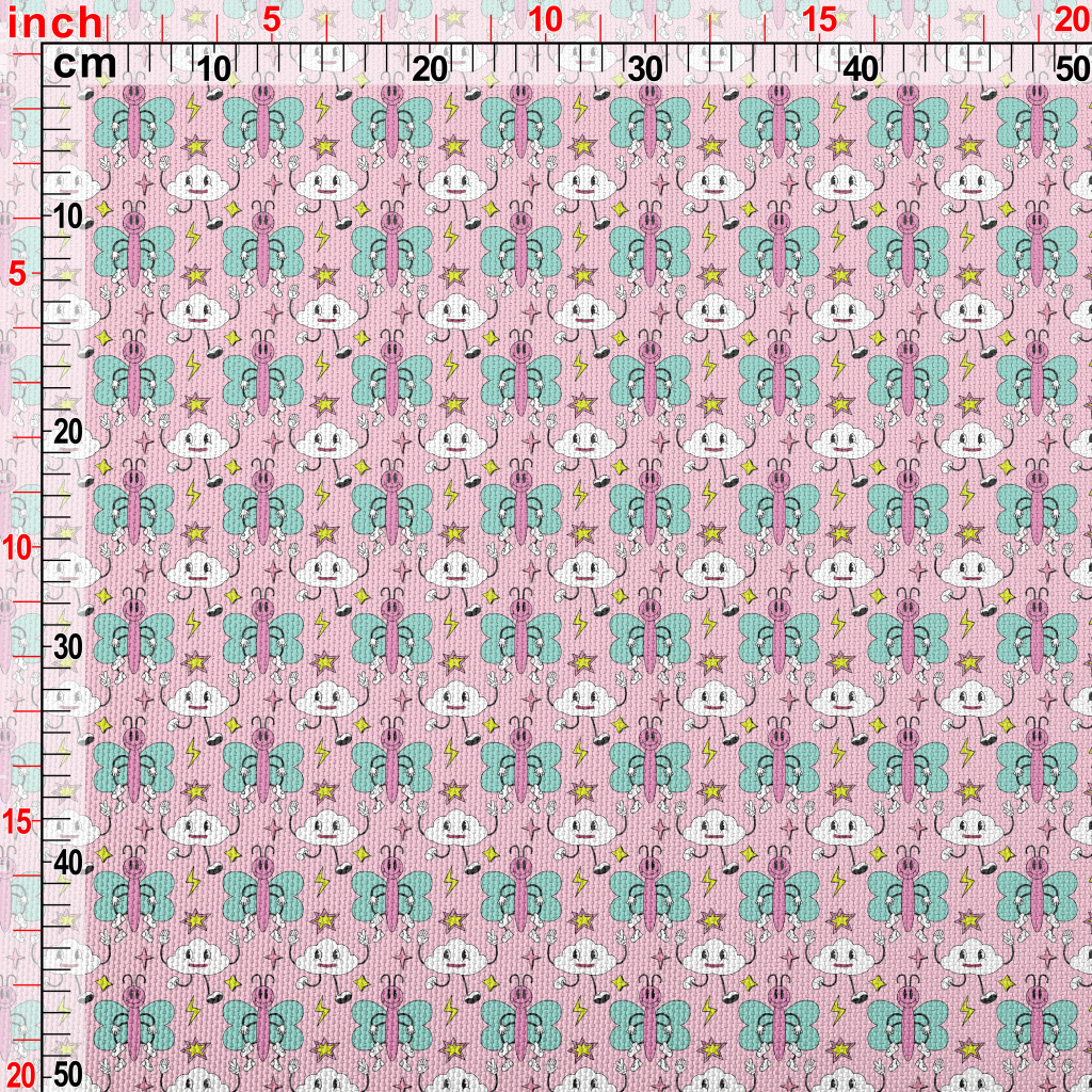 卡通粉色蝴蝶和雲朵牛津布(幅寬150公分)