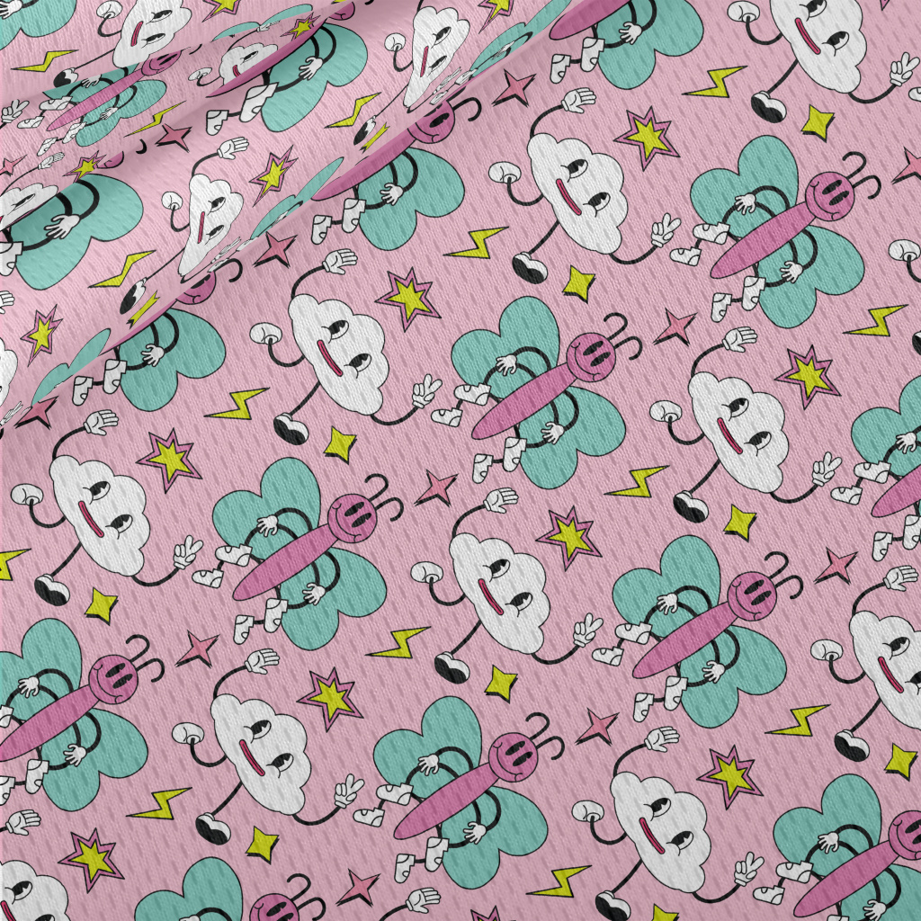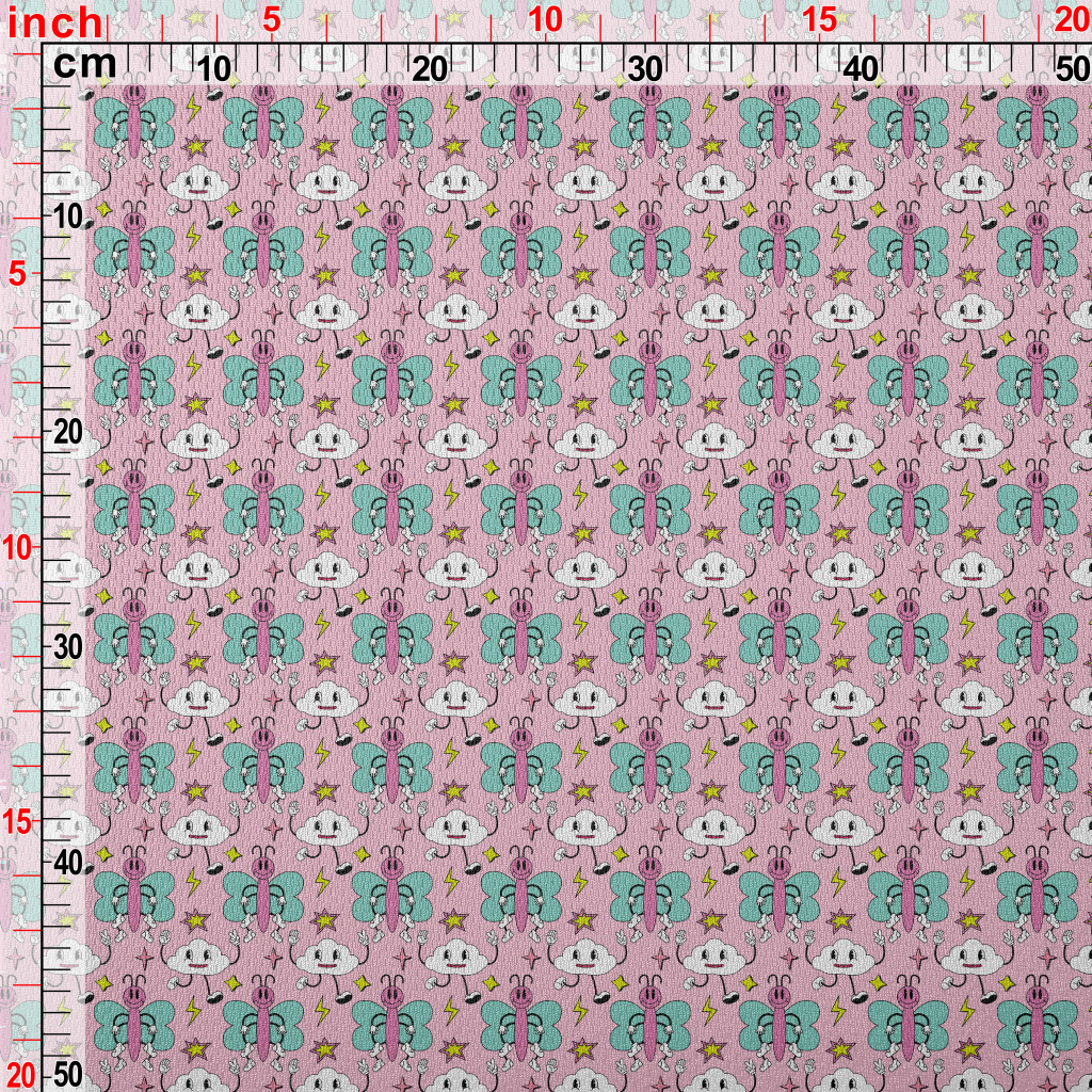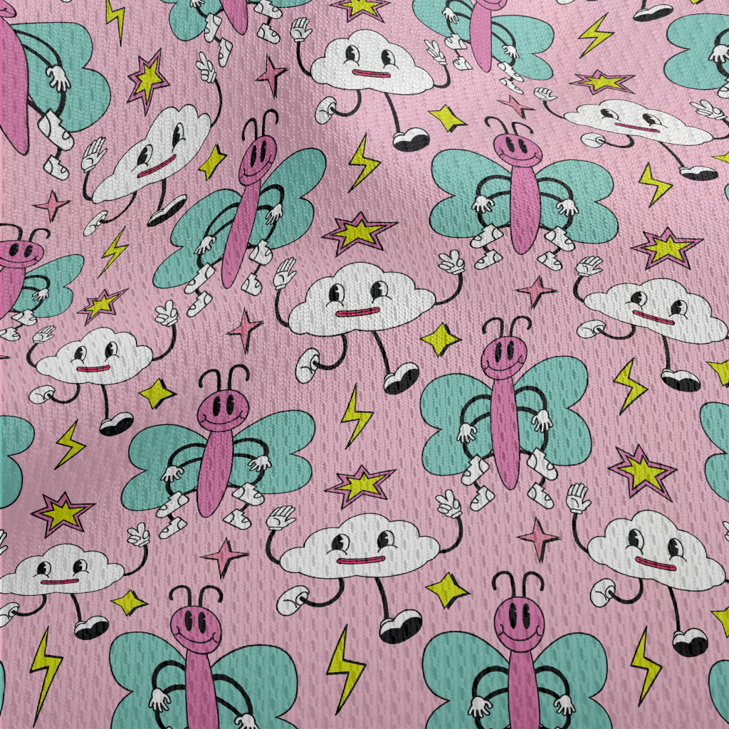 卡通粉色蝴蝶和雲朵鳥眼布(幅寬160公分)