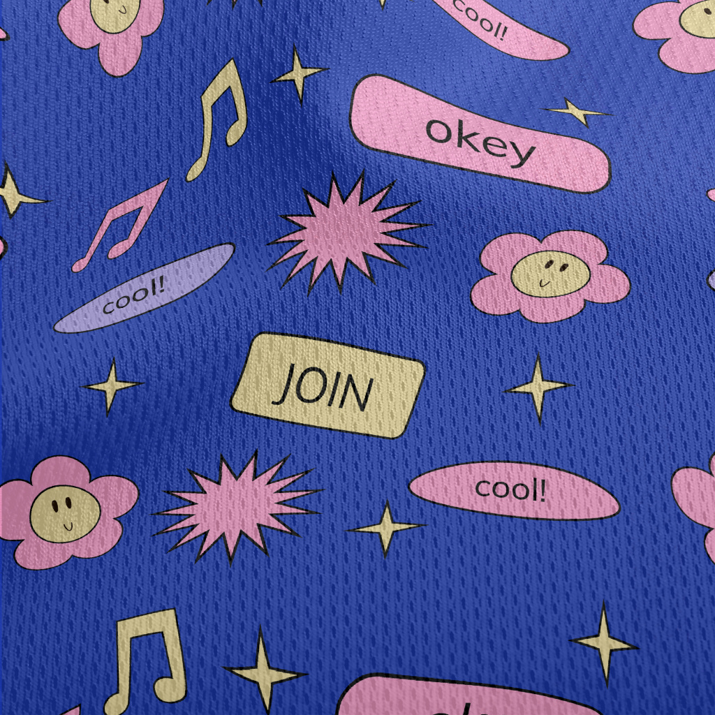 70 年代英文泡泡框和花朵帆布(幅寬150公分)
