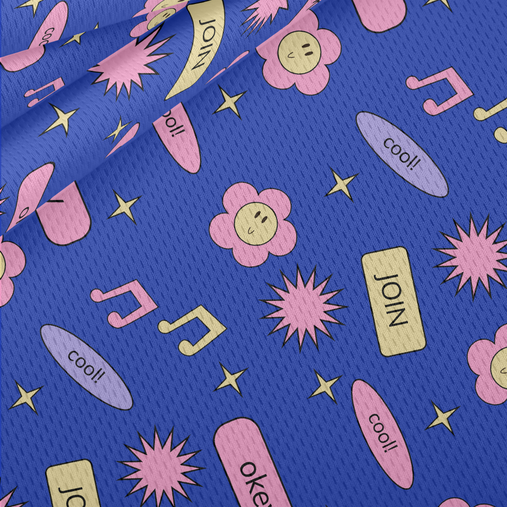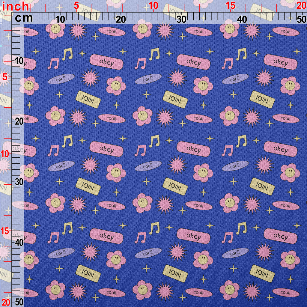 70 年代英文泡泡框和花朵春亞紡(幅寬160公分)