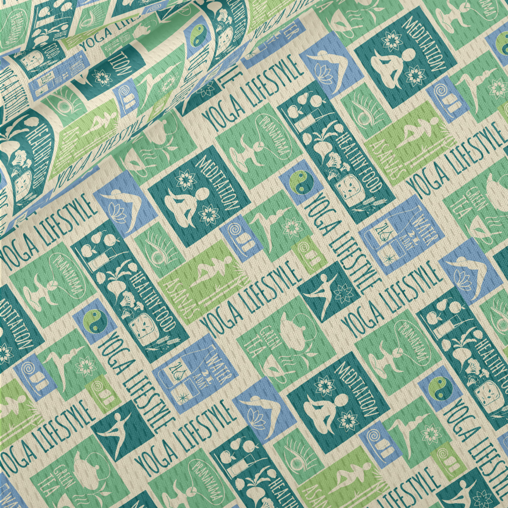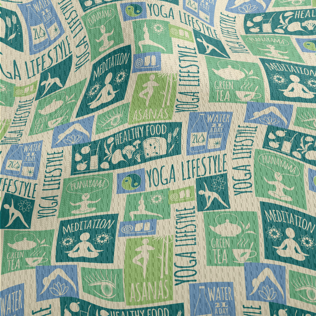 復古瑜珈生活方式圖案鳥眼布(幅寬160公分)