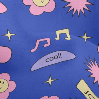 70 年代英文泡泡框和花朵麻布(幅寬150公分)