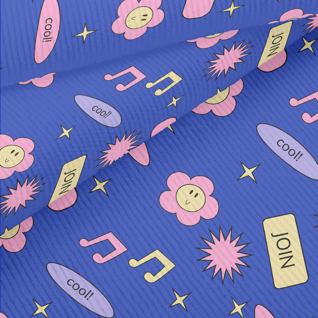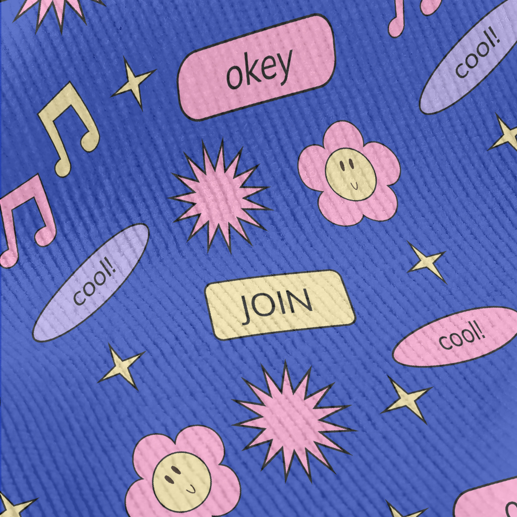 70 年代英文泡泡框和花朵帆布(幅寬150公分)