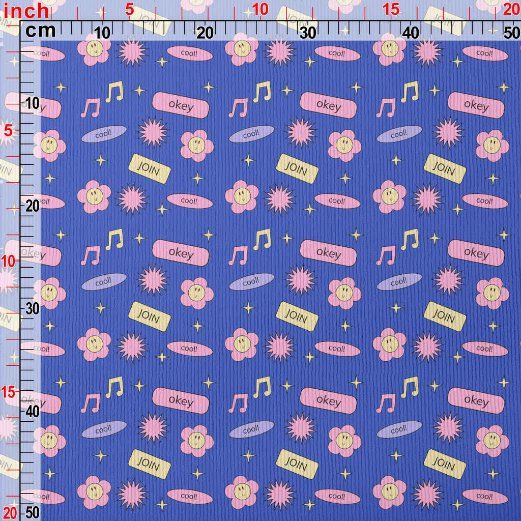 70 年代英文泡泡框和花朵雙斜布(幅寬150公分)