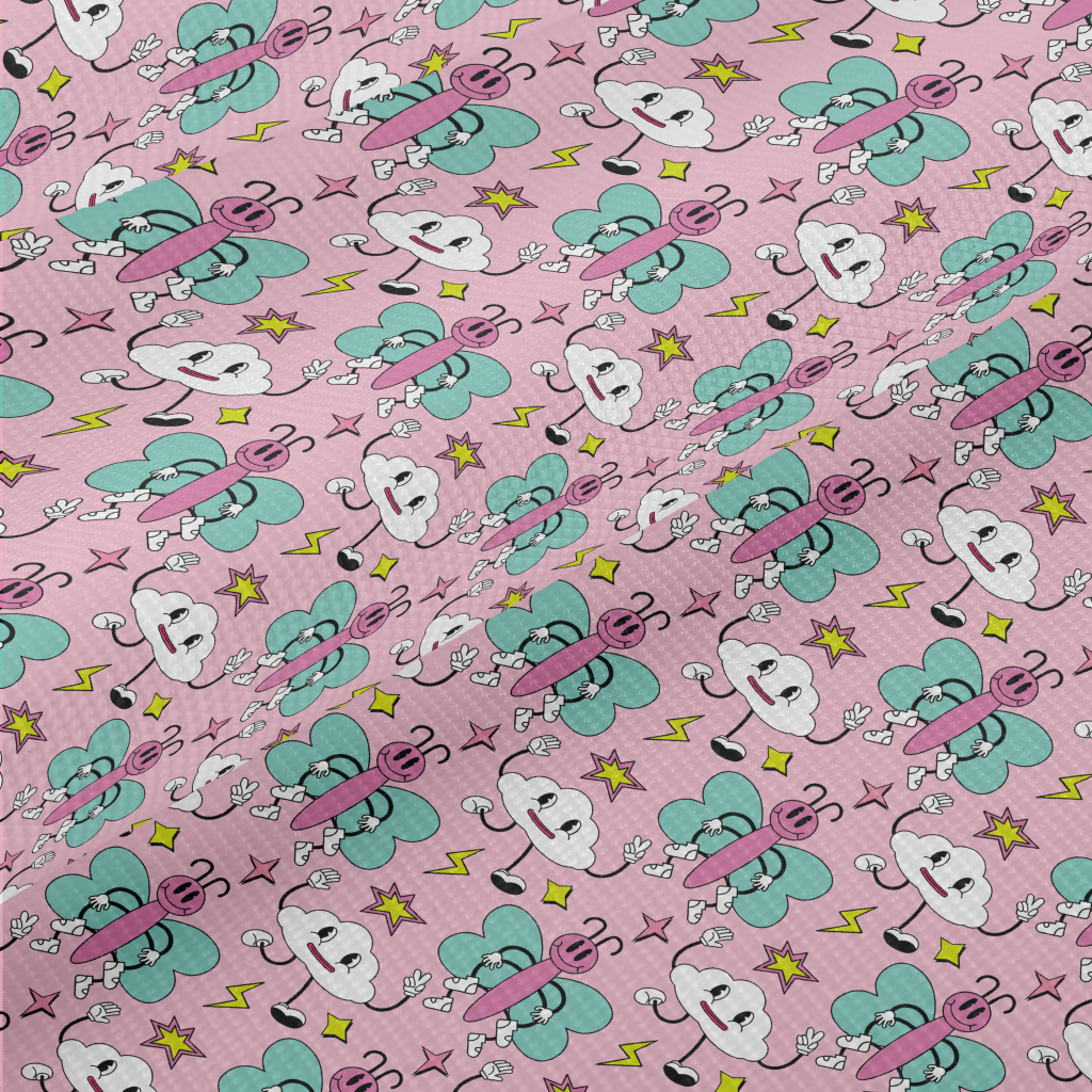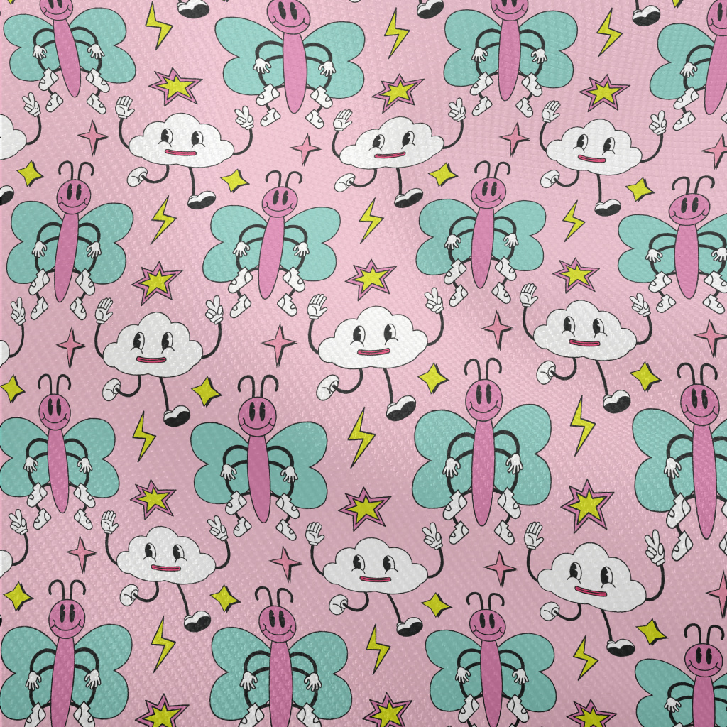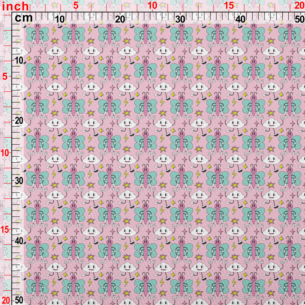 卡通粉色蝴蝶和雲朵雙斜布(幅寬150公分)