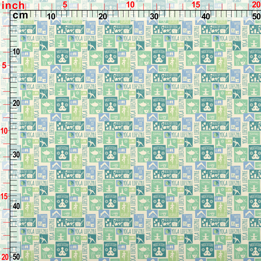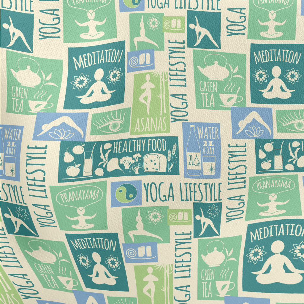 復古瑜珈生活方式圖案羅馬布(幅寬160公分)