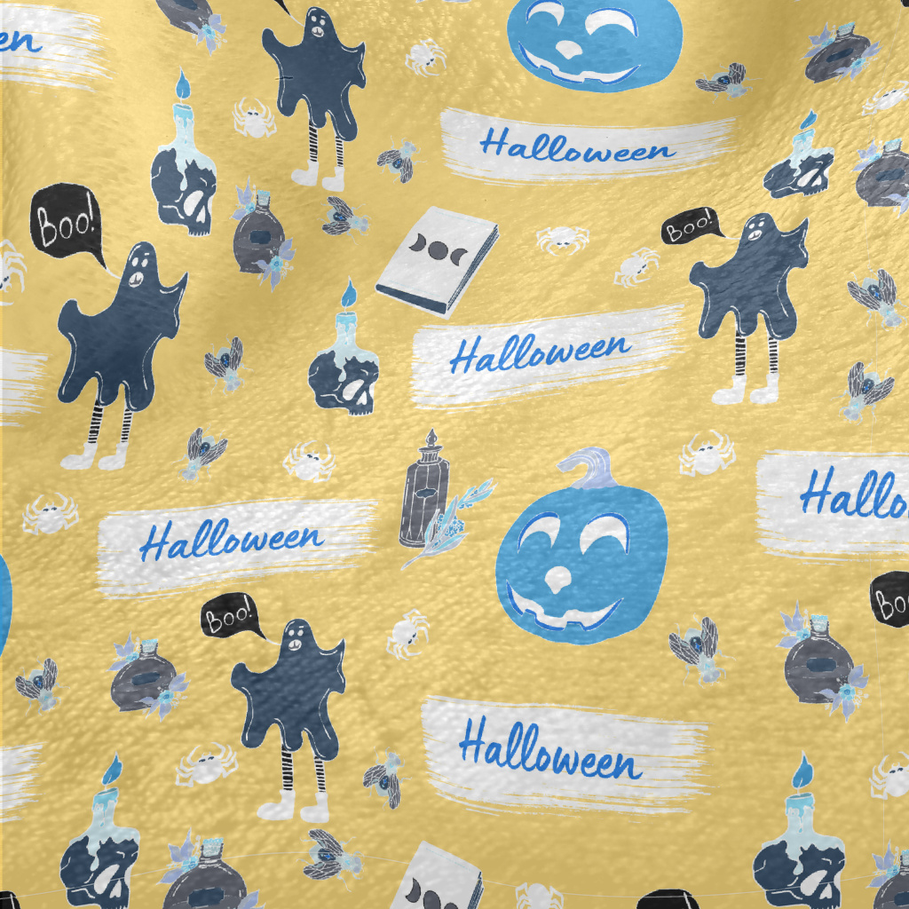 微笑南瓜和嚇人幽靈法蘭絨(幅寬150公分)