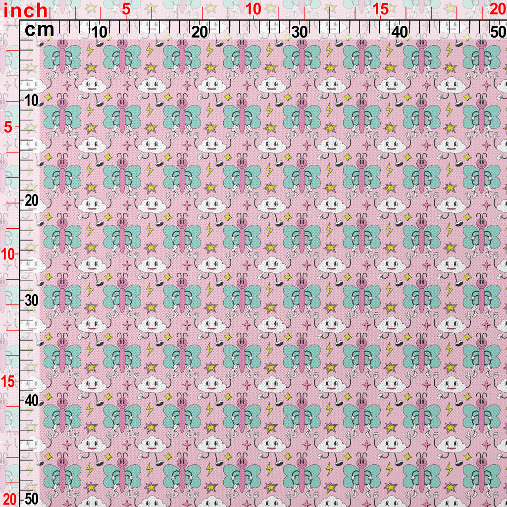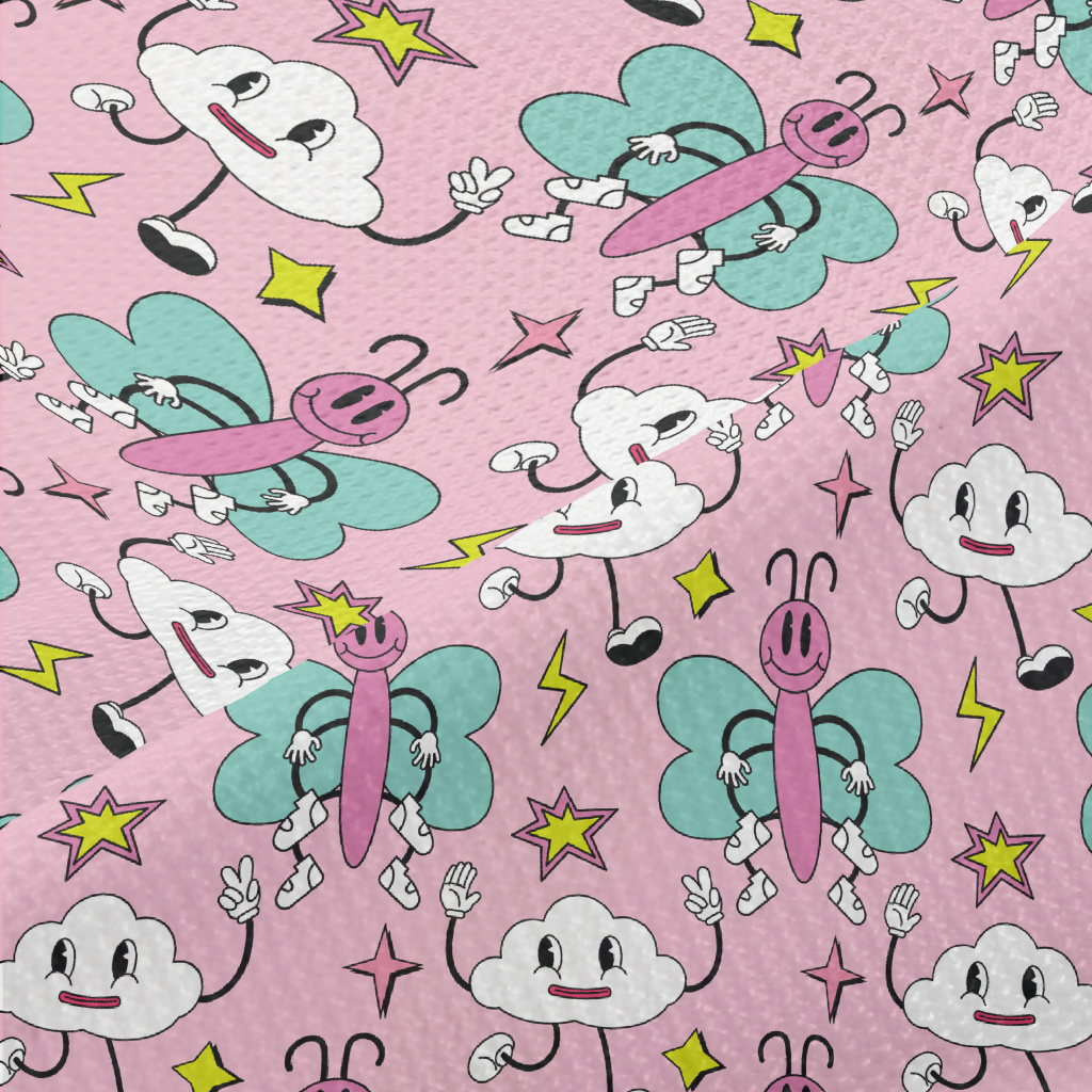卡通粉色蝴蝶和雲朵高爾布(幅寬180公分)