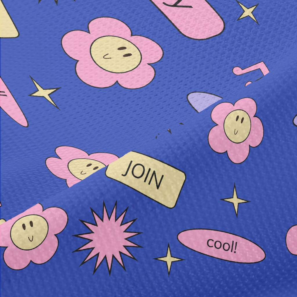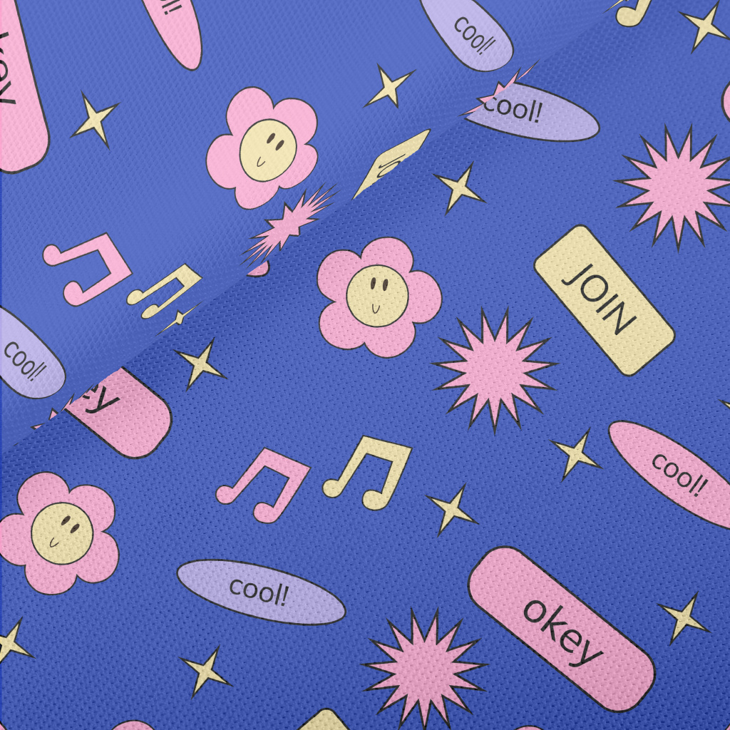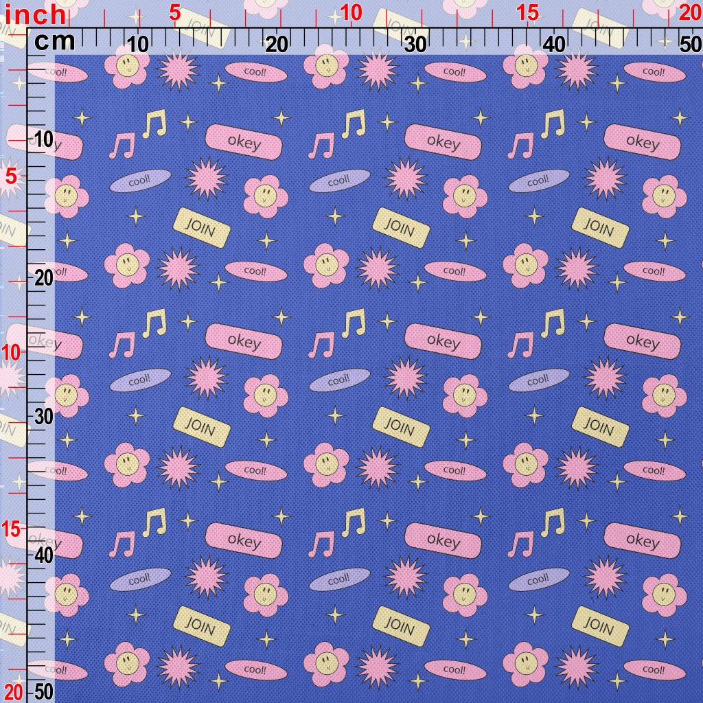 70 年代英文泡泡框和花朵帆布(幅寬150公分)