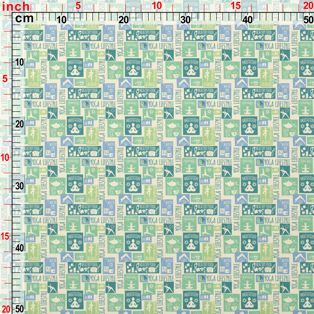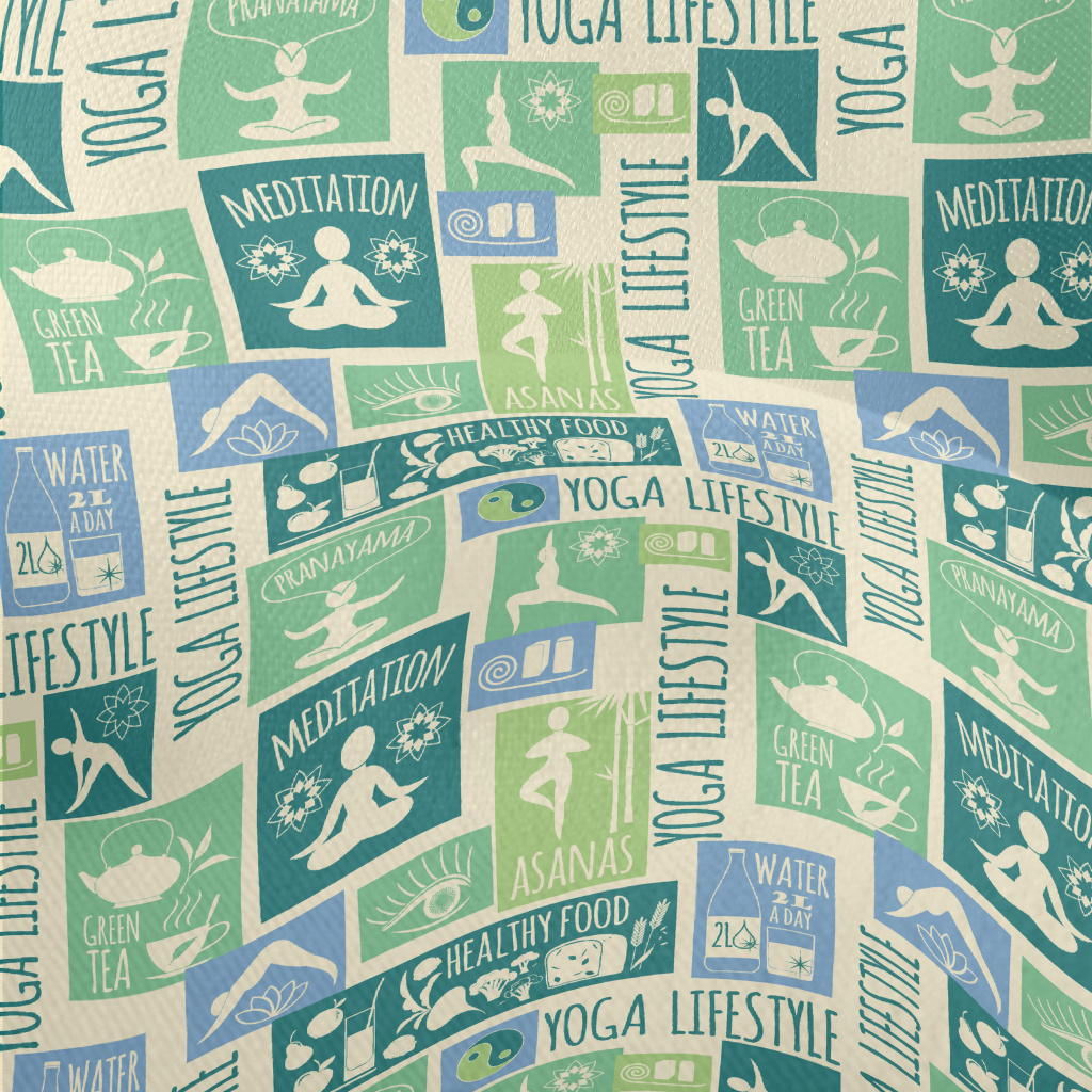 復古瑜珈生活方式圖案竹節麻(幅寬150公分)